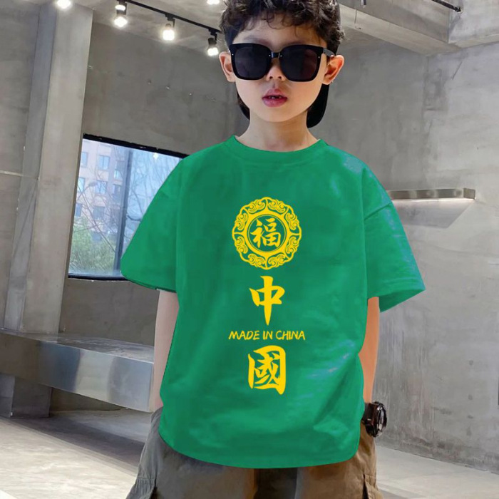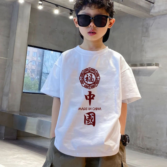 2024 새로운 캐주얼 느슨한 코튼 보이즈 반팔 티셔츠 아동복 반팔 티셔츠 여름 전국 패션 어린이 여름 원피스