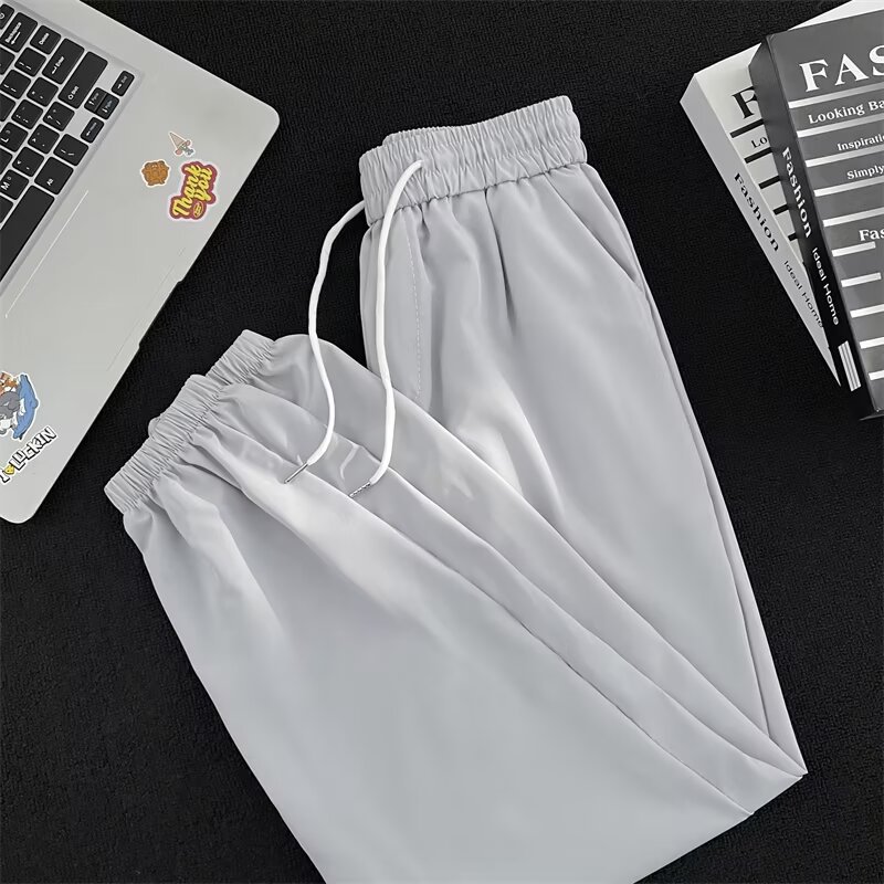 잘 생긴 여름 분위기 플러스 사이즈 슬리밍 탄성 허리 하이 스트리트 발가락 빠른 건조 바지 올 매치 보이 크롭 팬츠
