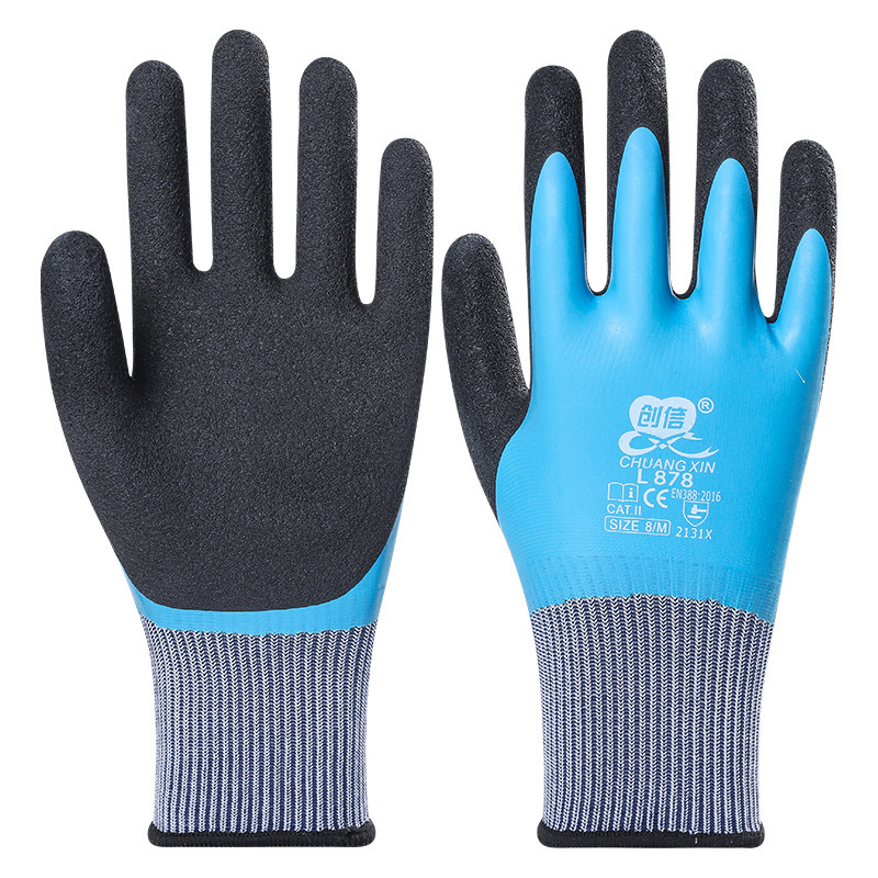 교수형 접착제 노동 보호 장갑 Chuangxin L878 나일론 폼 라텍스 장갑 빈 방수 미끄럼 방지 폼 장갑