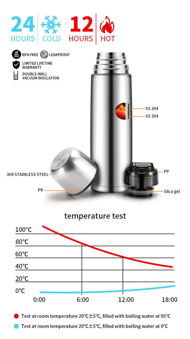 내부 3개, 외부 2개의 대용량 스테인레스 스틸 총알 보온병 컵, 야외 휴대용 여행용 주전자, 등산 스포츠 워터 컵