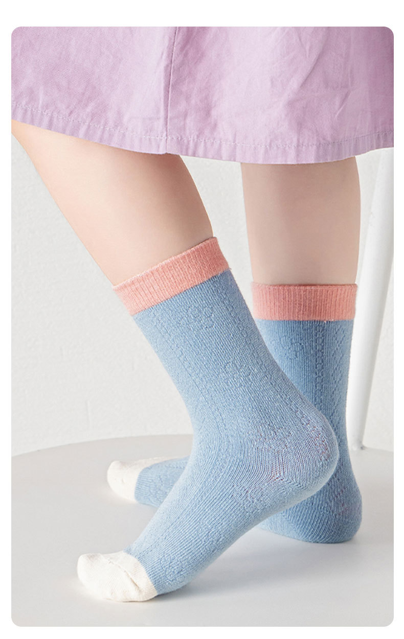2024 새로운 소녀 양말 가을 달콤한 대비 컬러 튜브 양말 일본 무지개 어린이 양말 봄과 가을 꽃 양말