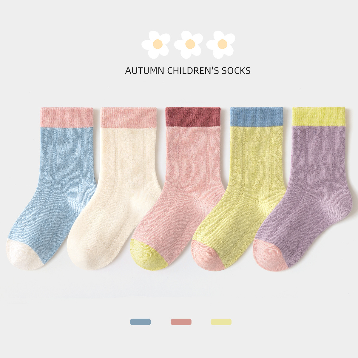 2024 새로운 소녀 양말 가을 달콤한 대비 컬러 튜브 양말 일본 무지개 어린이 양말 봄과 가을 꽃 양말스토어 가기