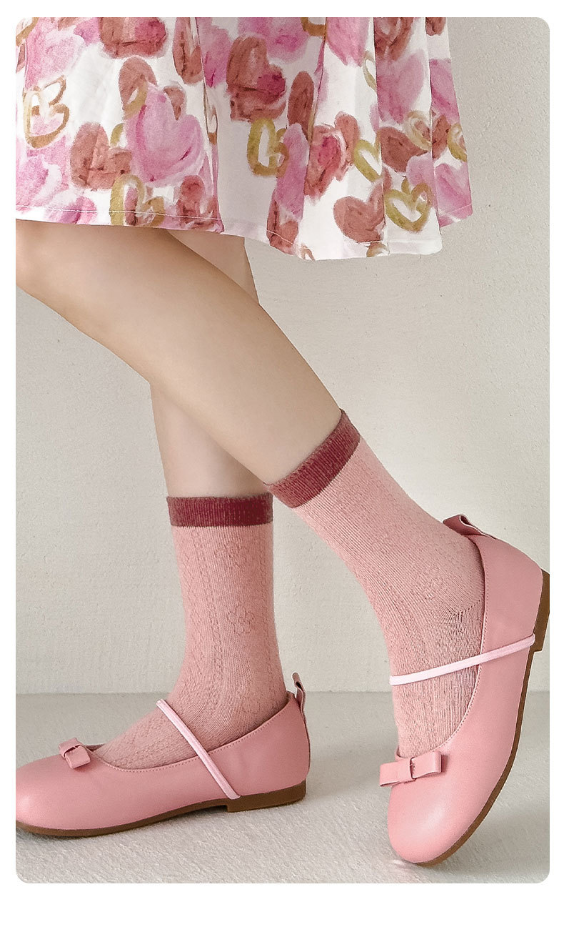 敏榴女童袜子美拉德日系中筒袜咖啡色爱心蝴蝶结儿童袜子春秋棉袜