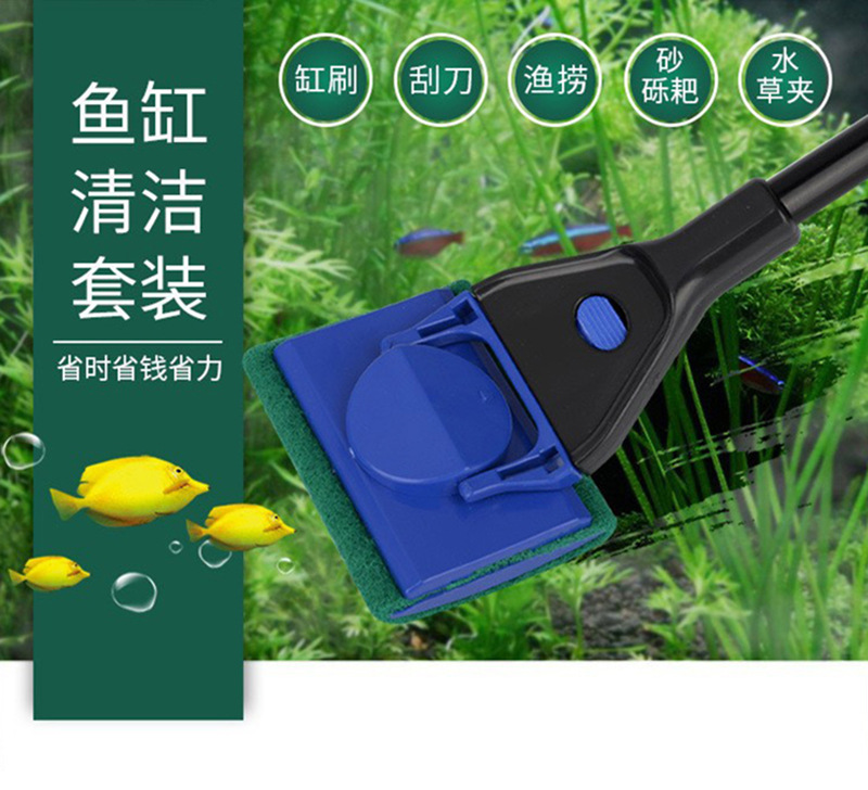 물고기 낚시 수족관 청소 브러쉬 생선 탱크 브러쉬 긴 손잡이 자갈 긁어 물 잔디 클립 물고기 5 대 1 청소 세트스토어 가기