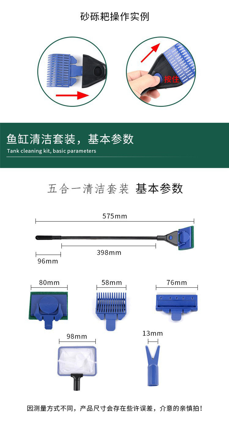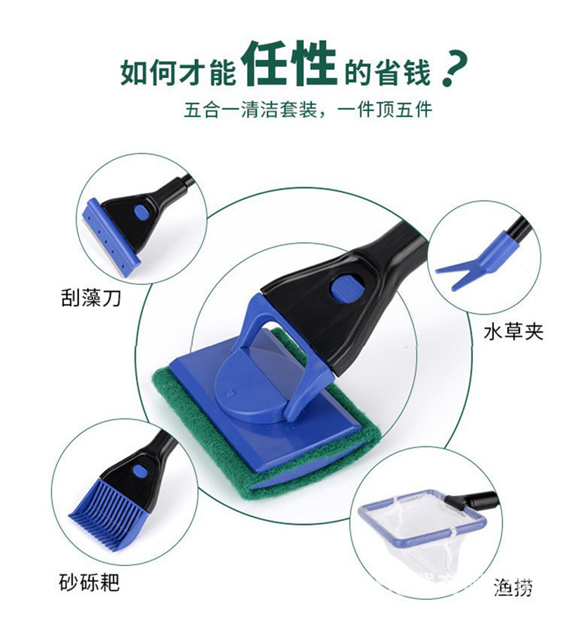 물고기 낚시 수족관 청소 브러쉬 생선 탱크 브러쉬 긴 손잡이 자갈 긁어 물 잔디 클립 물고기 5 대 1 청소 세트