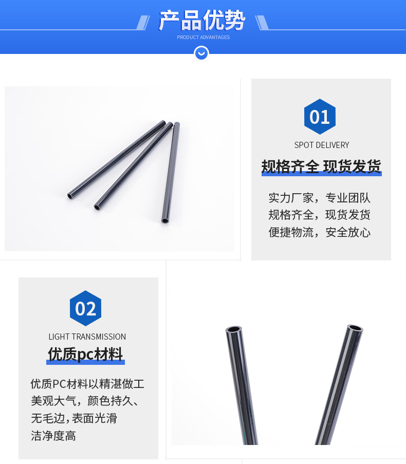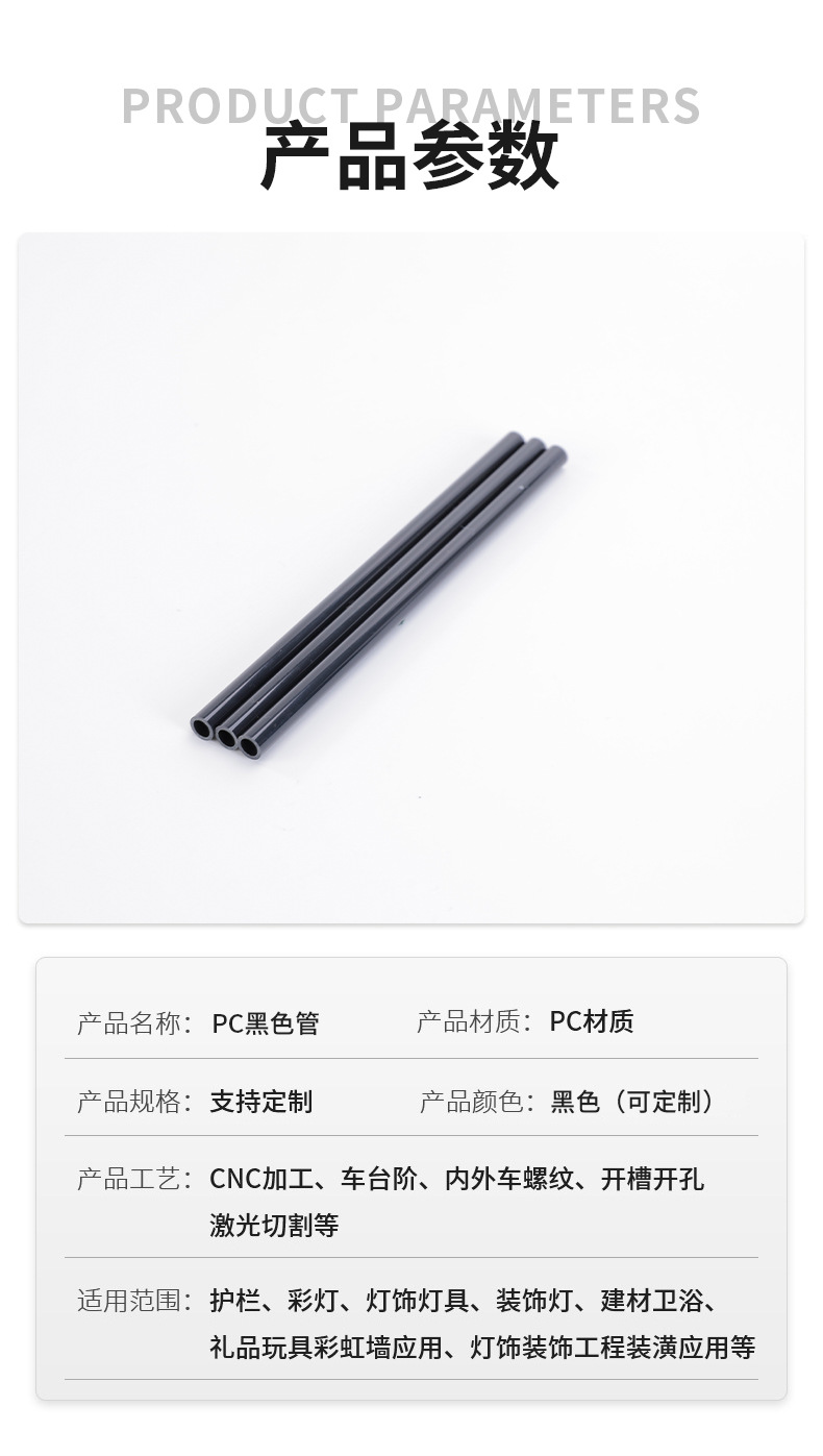 Pc 블랙 튜브 순수 블랙 튜브 플라스틱 튜브 블랙 PC 튜브 내마모성 플라스틱 튜브 제조 업체 도매스토어 가기