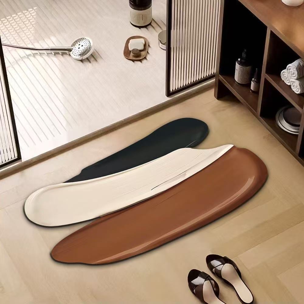 국경 간 크리에이티브 아크 브러시 스트로크 욕실 바닥 매트 화장실 Diatom 진흙 흡수성 발 매트 화장실 미끄럼 방지 바닥 매트