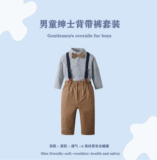 남학생 세트 가을 긴팔 아동복 1 세 신사의 원피스 봄과 가을 스트랩 남성 아기 투피스 세트스토어 가기