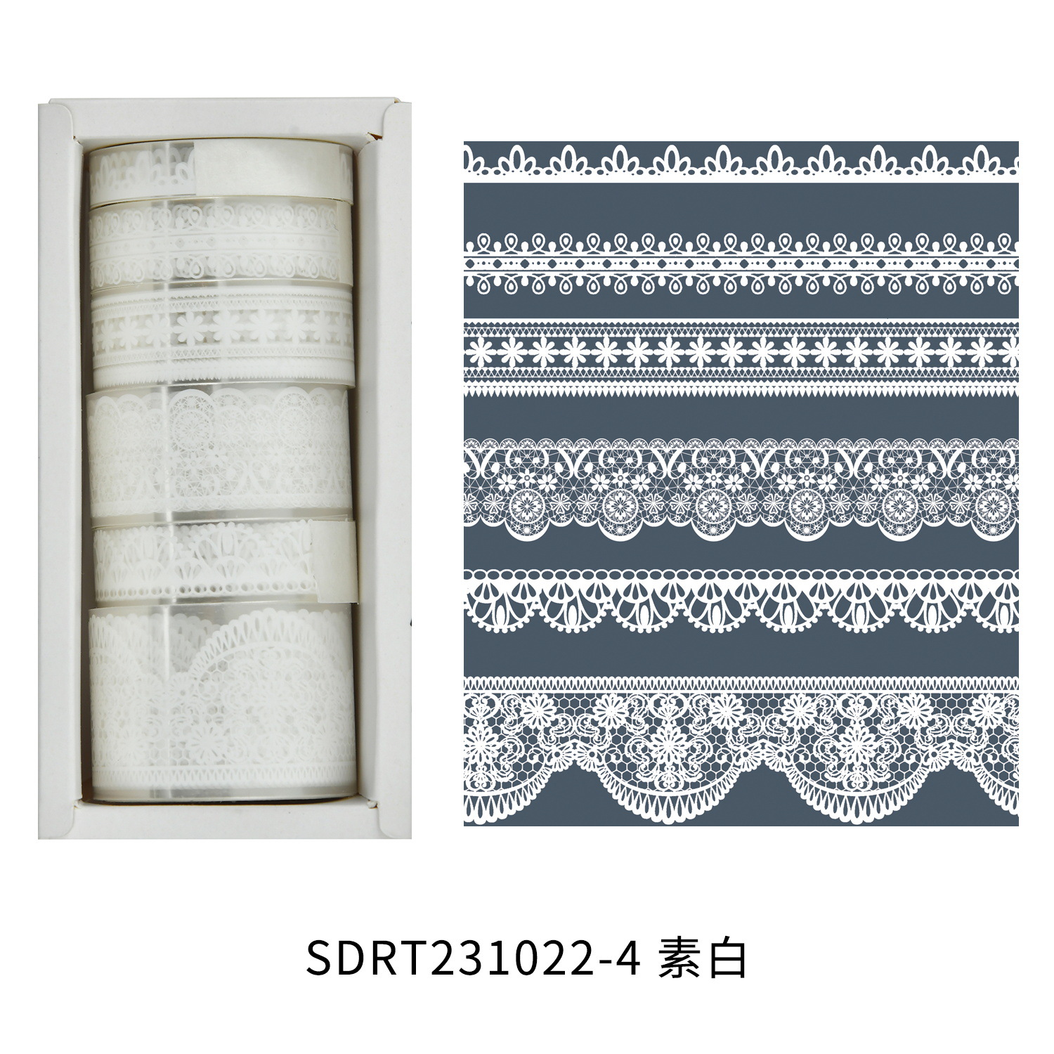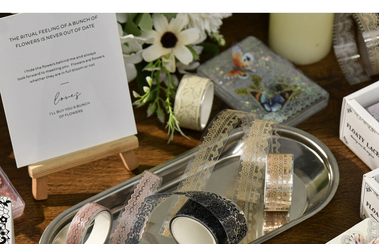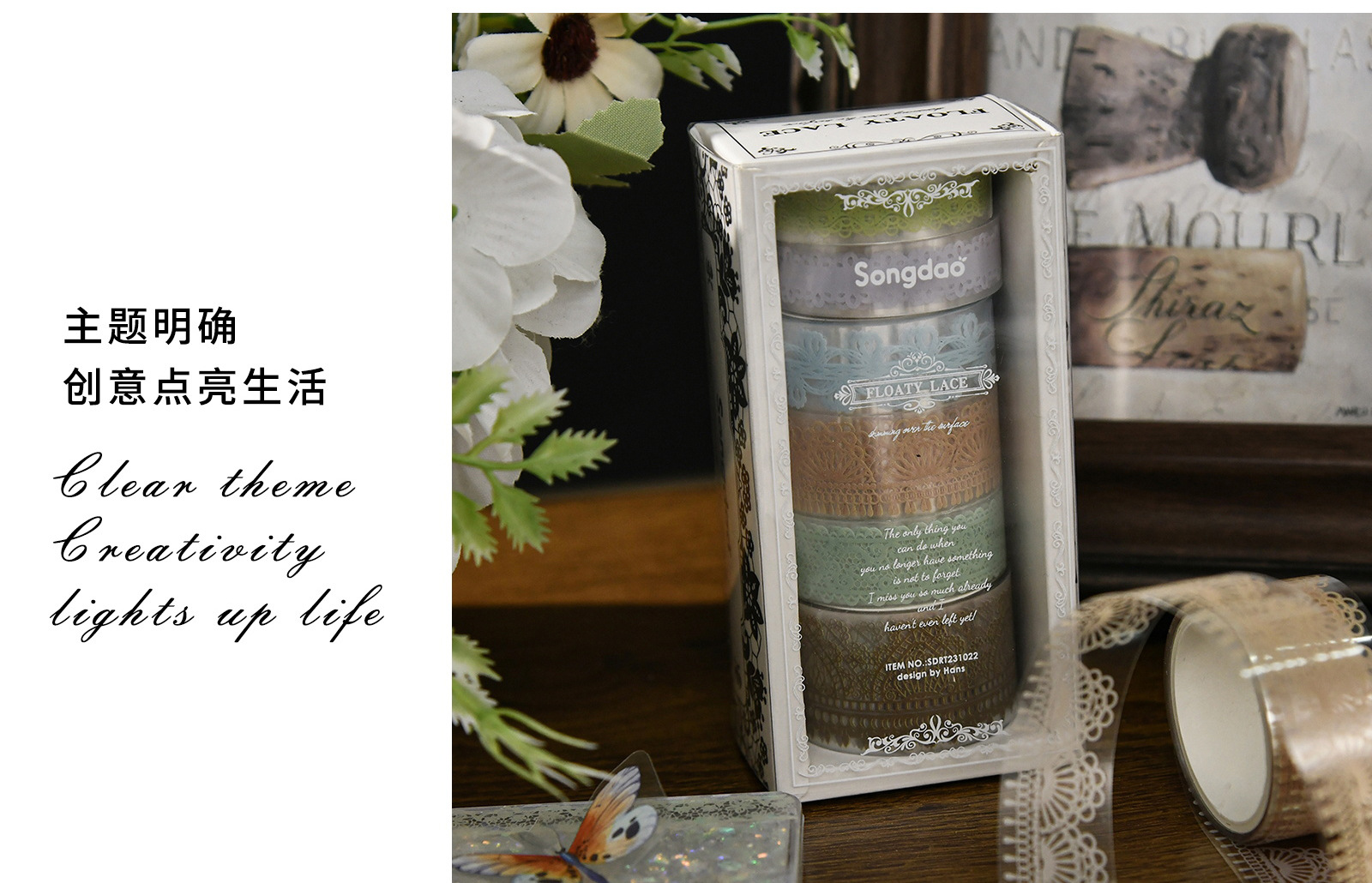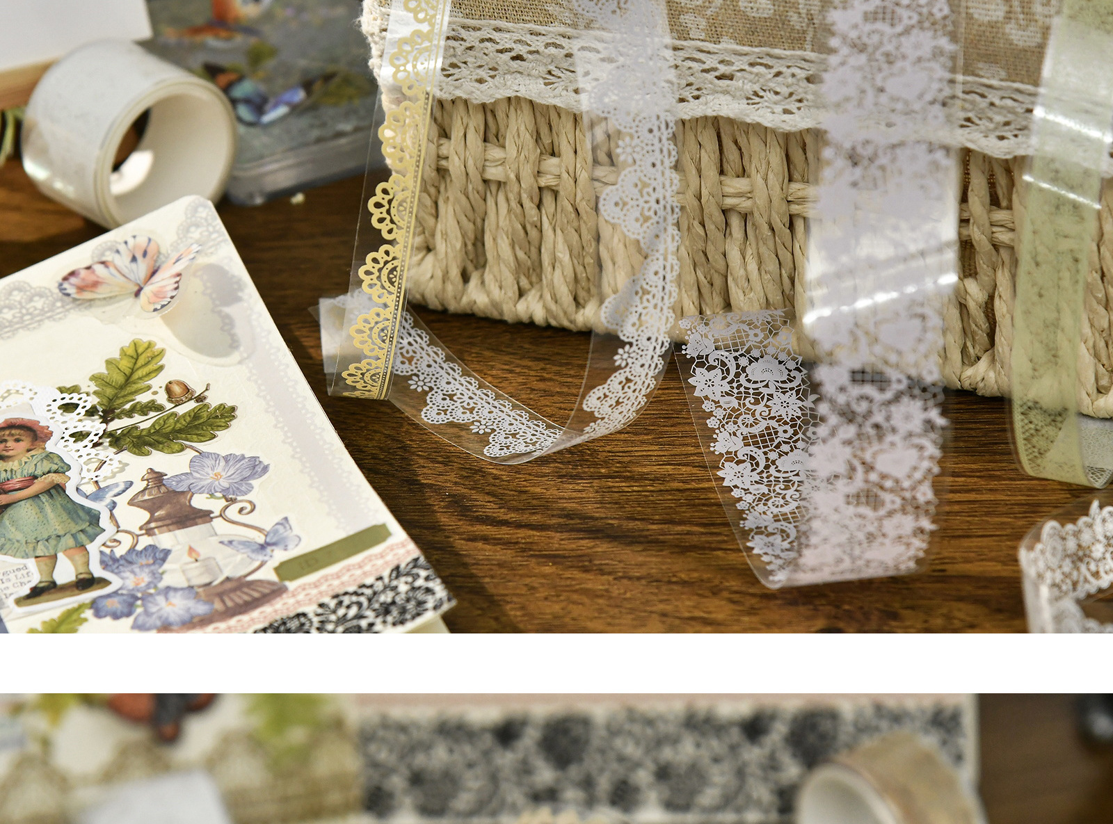 부동 레이스 및 종이 테이프 세트 빈티지 멀티 컬러 레이스 핸드 계정 테이프 꽃병 장식 스티커 재고스토어 가기