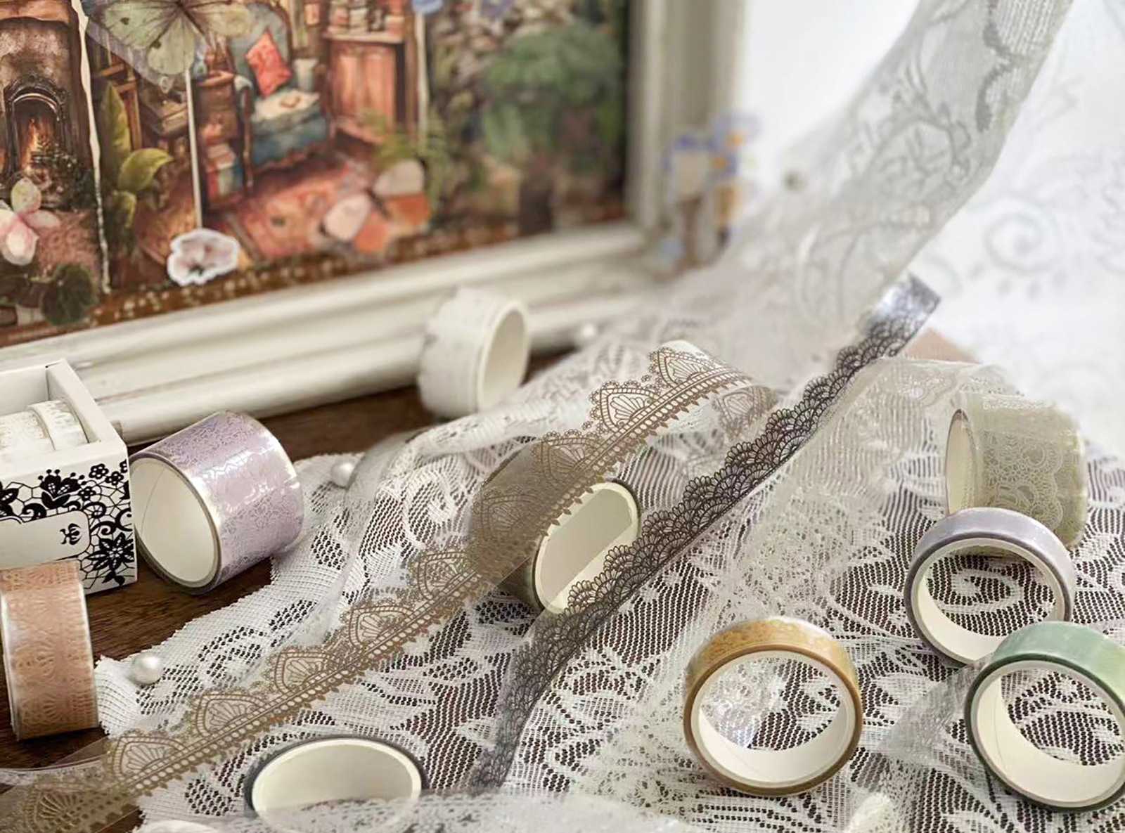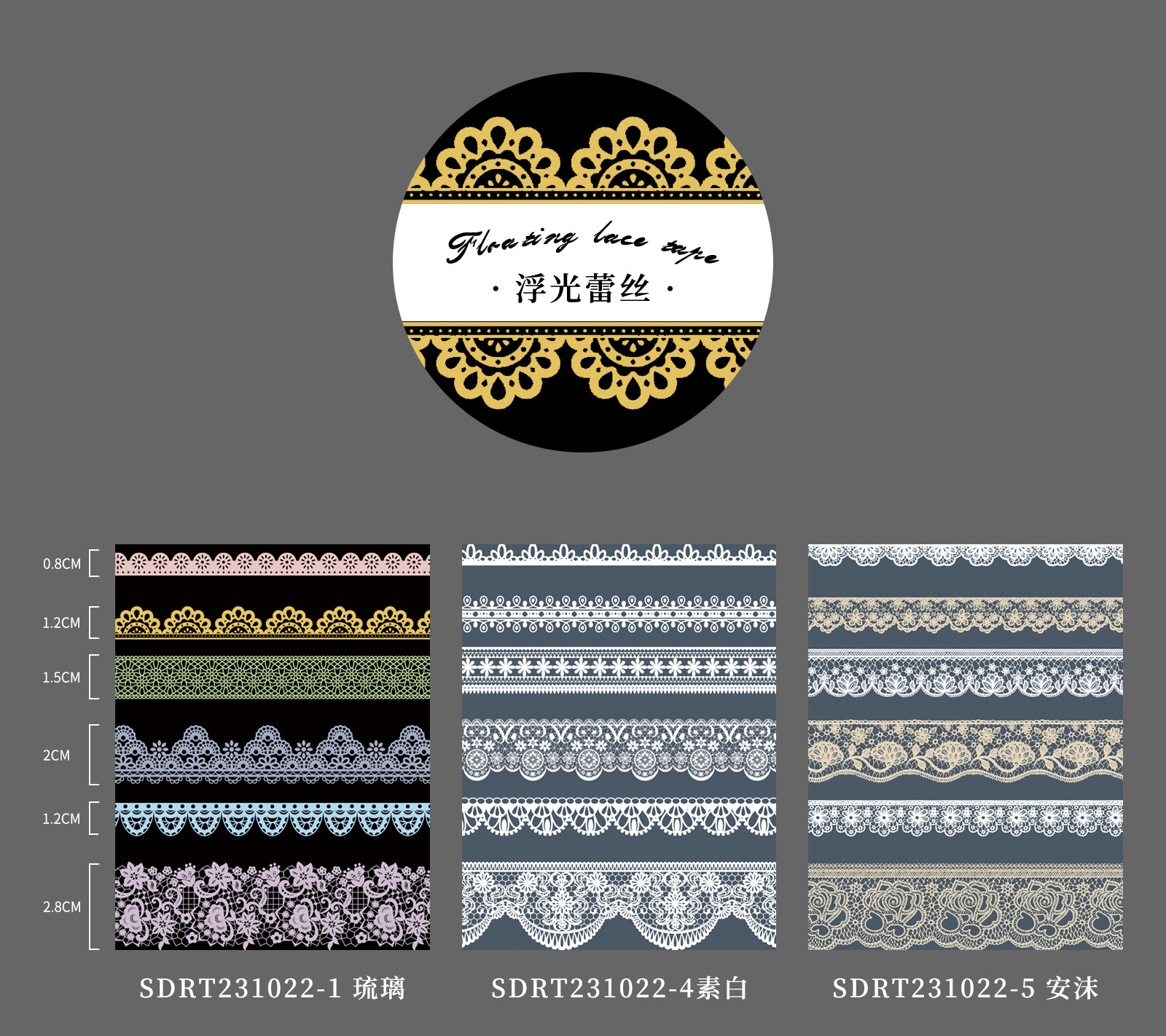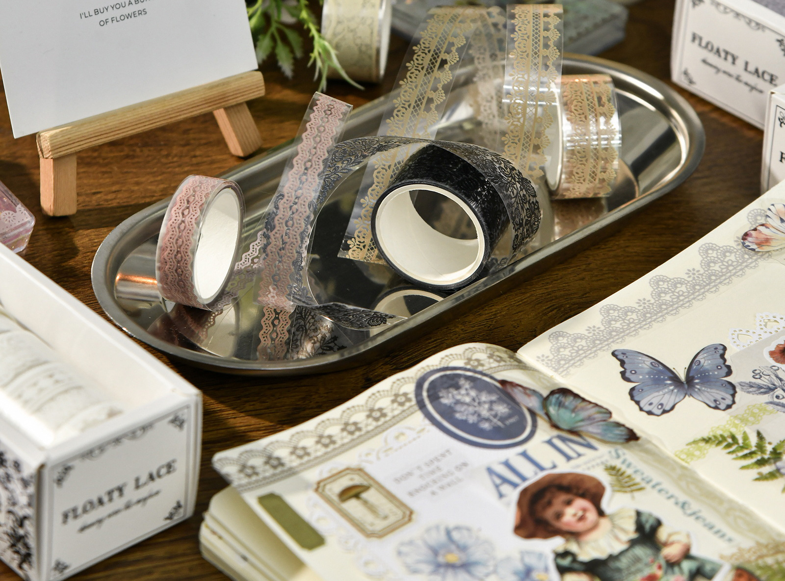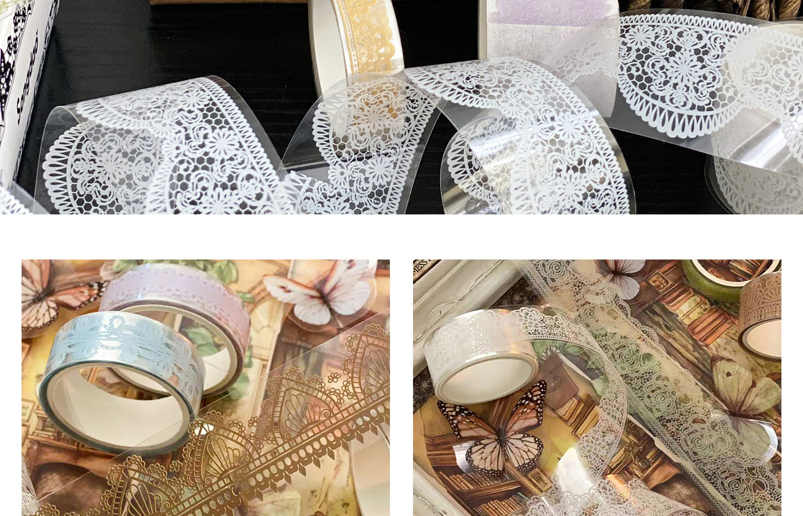 부동 레이스 및 종이 테이프 세트 빈티지 멀티 컬러 레이스 핸드 계정 테이프 꽃병 장식 스티커 재고스토어 가기