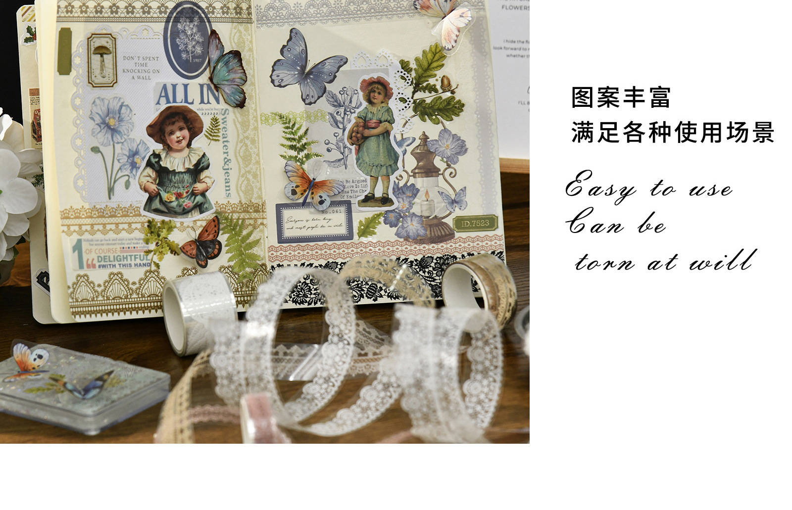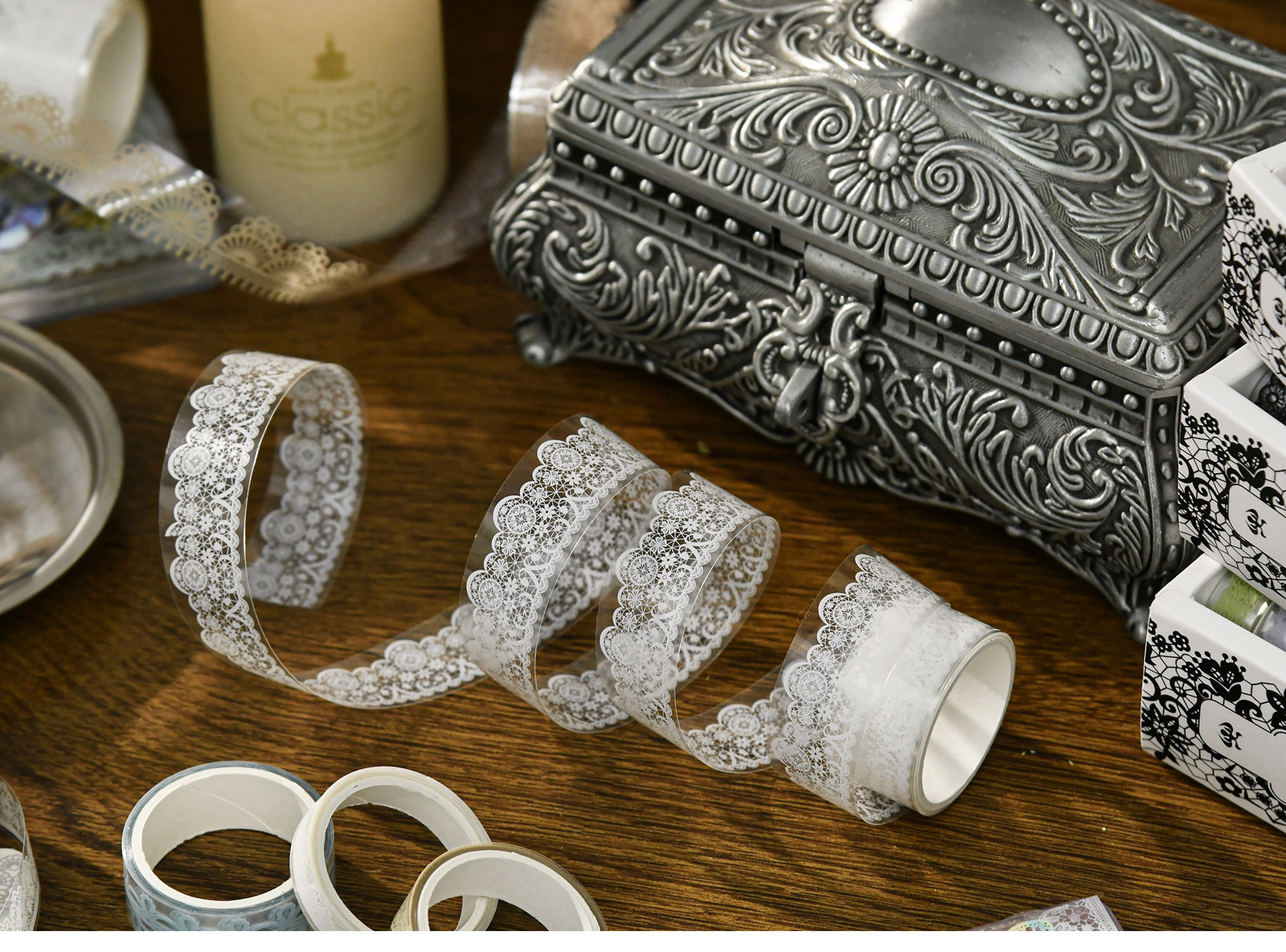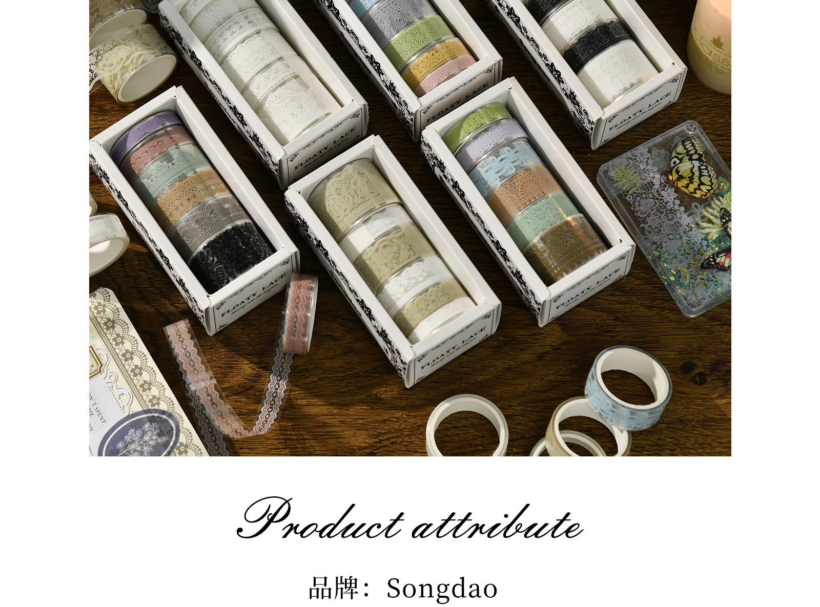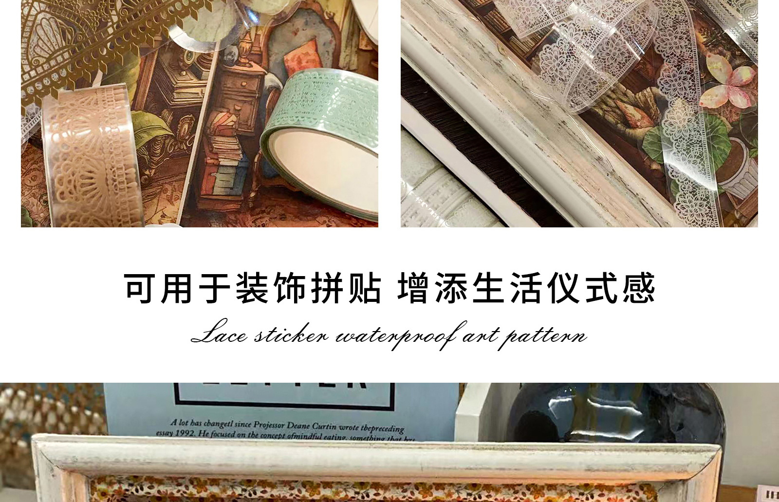부동 레이스 및 종이 테이프 세트 빈티지 멀티 컬러 레이스 핸드 계정 테이프 꽃병 장식 스티커 재고스토어 가기
