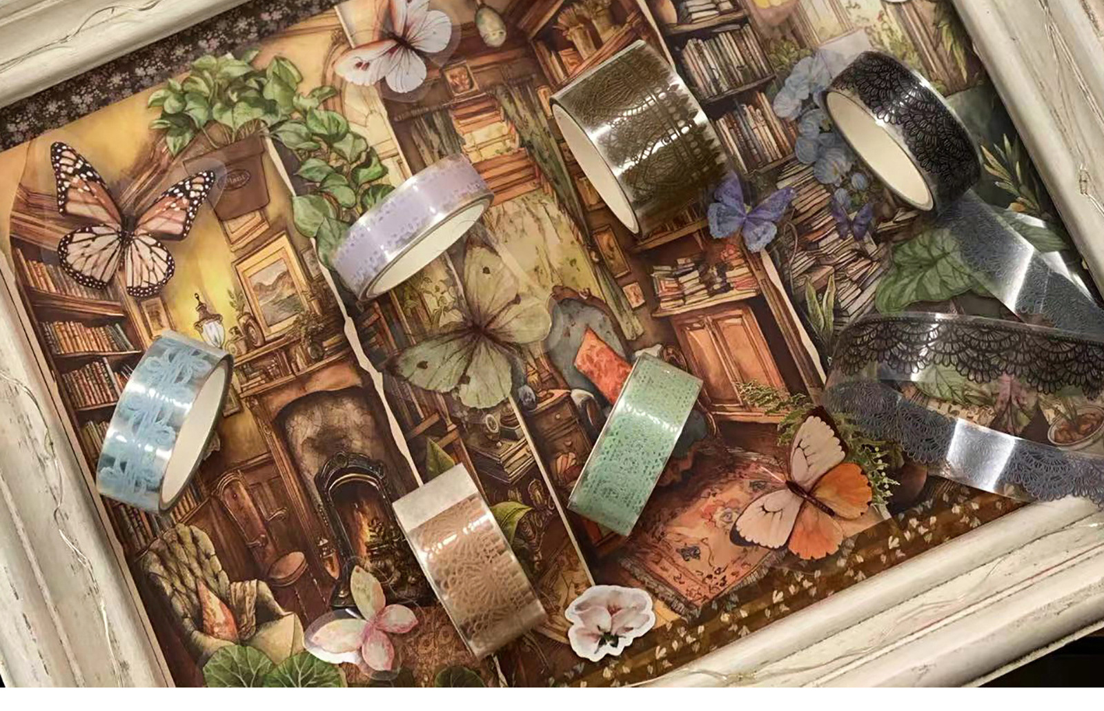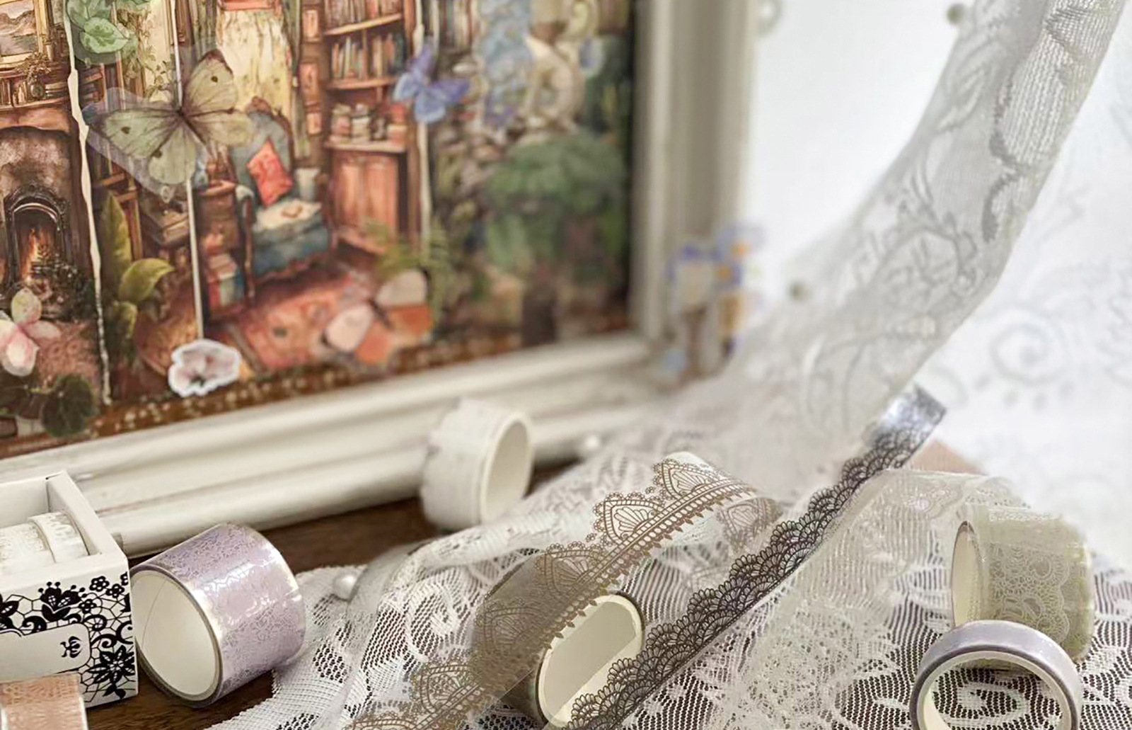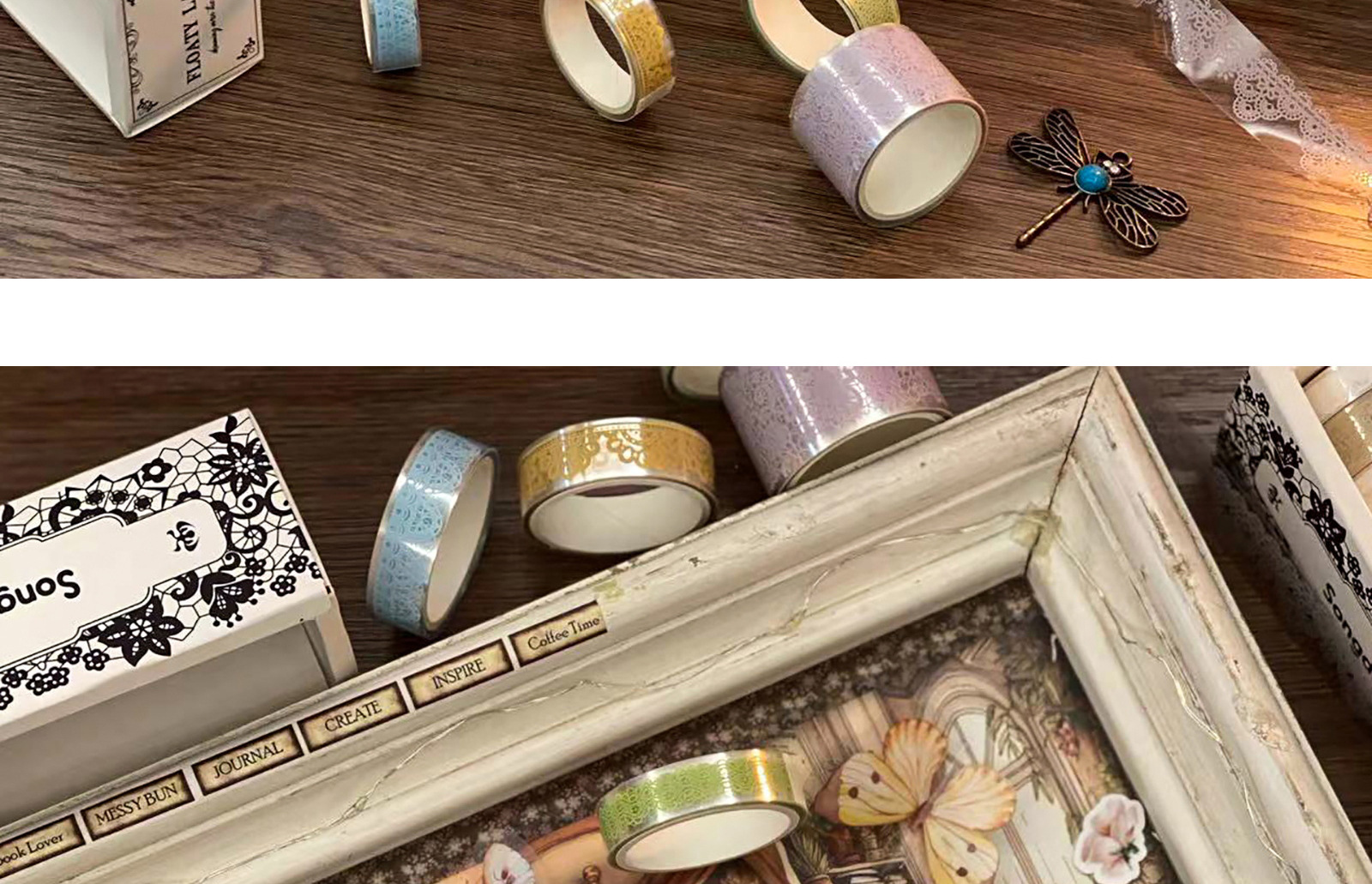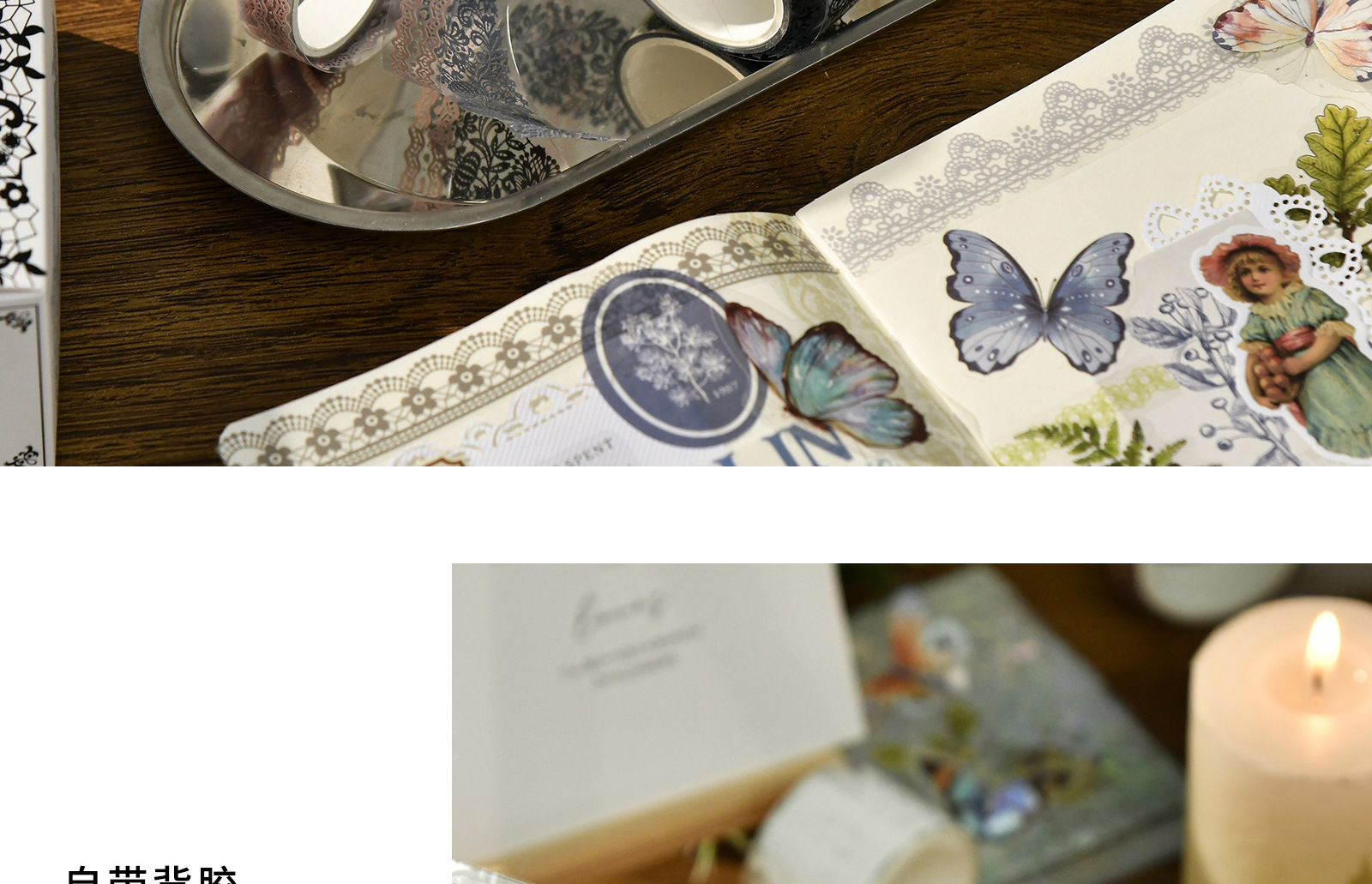 부동 레이스 및 종이 테이프 세트 빈티지 멀티 컬러 레이스 핸드 계정 테이프 꽃병 장식 스티커 재고스토어 가기