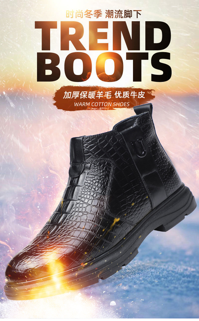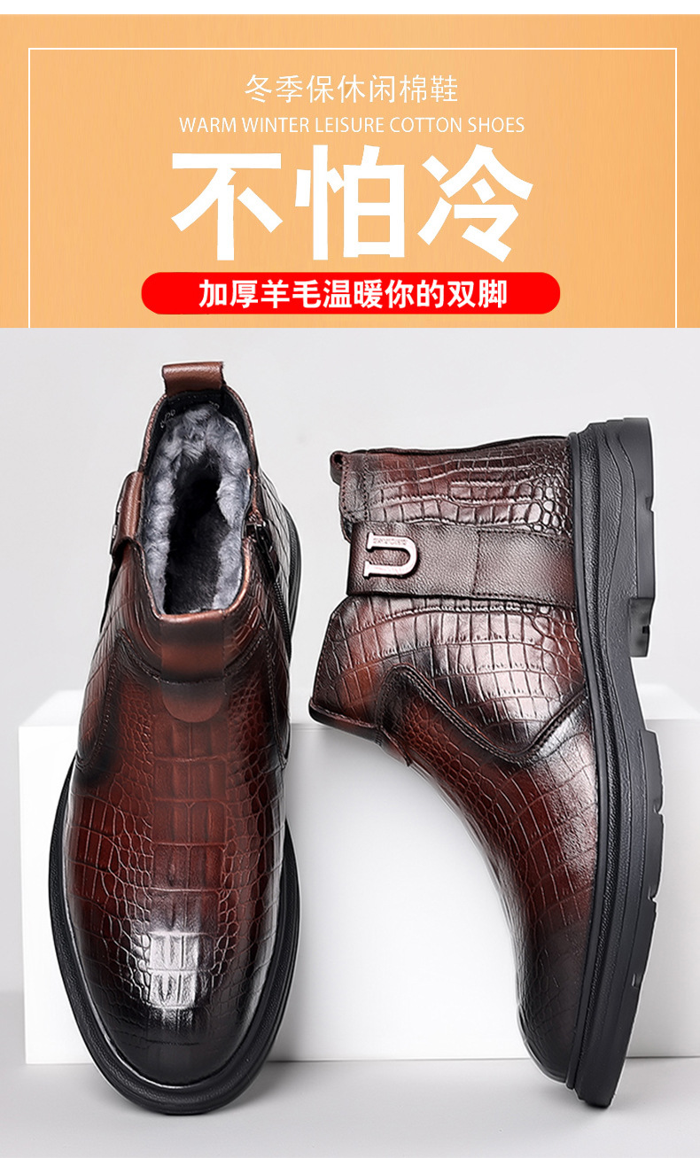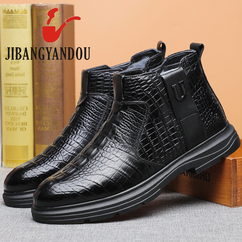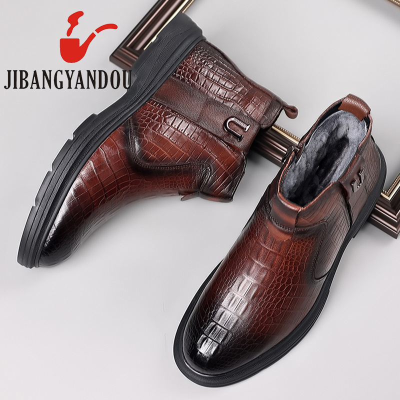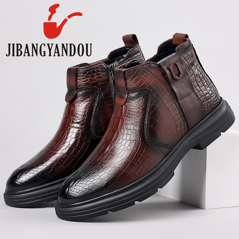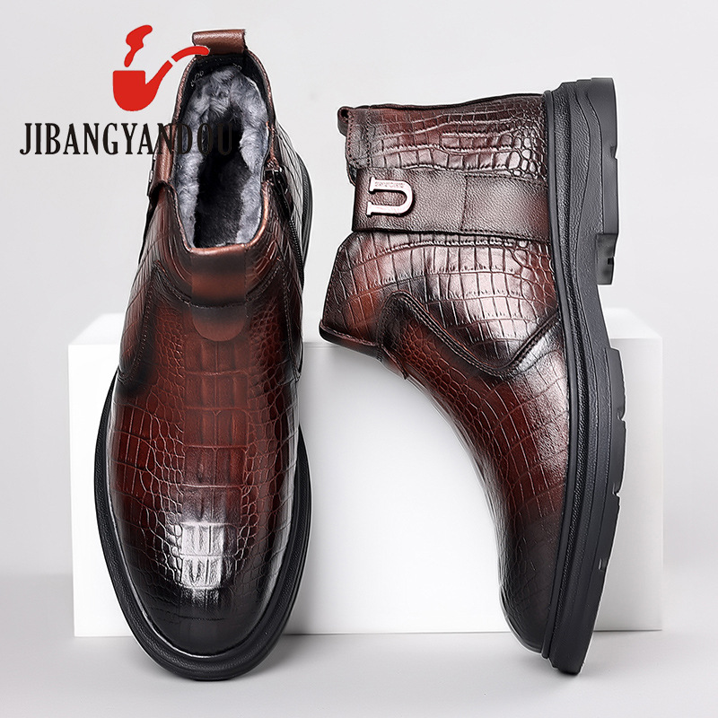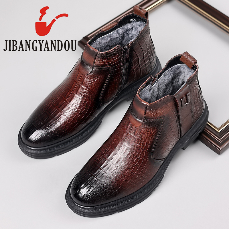 정품 파이프 남성 헤드 레이어 Cowhide 울 14cm 높은 가죽 신발 중간 도움말 마틴 부츠 기관차 따뜻한