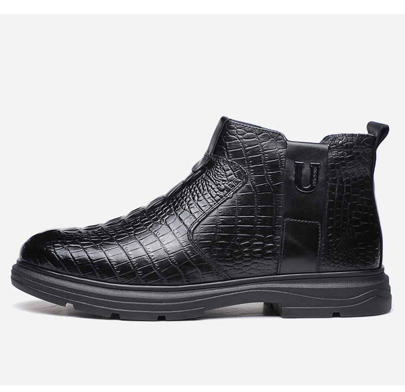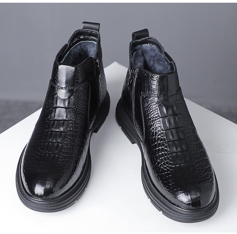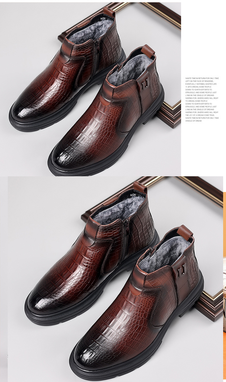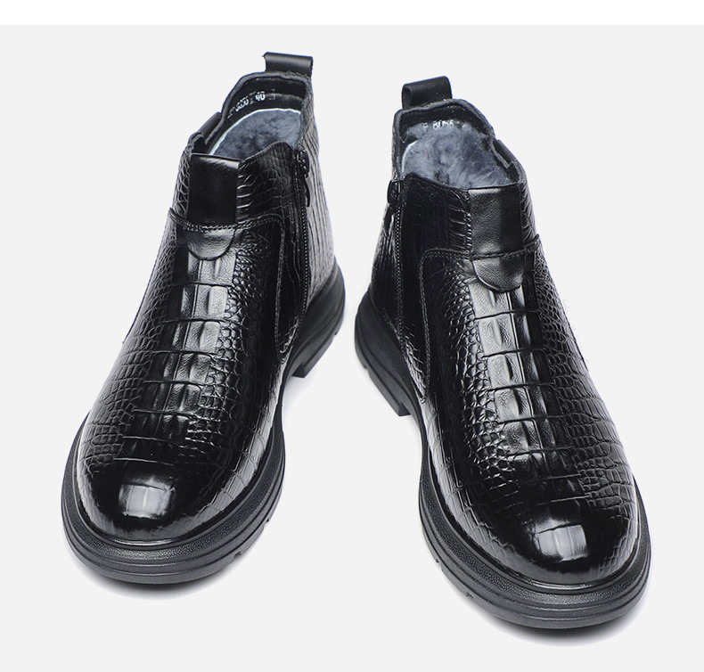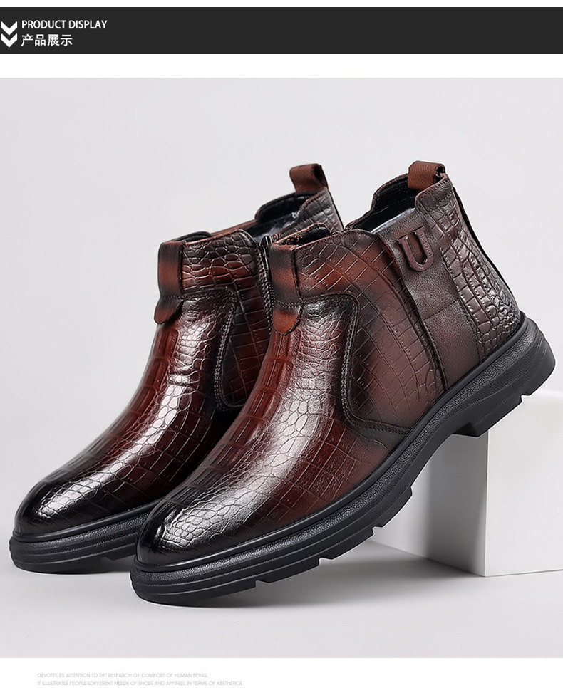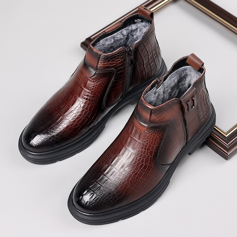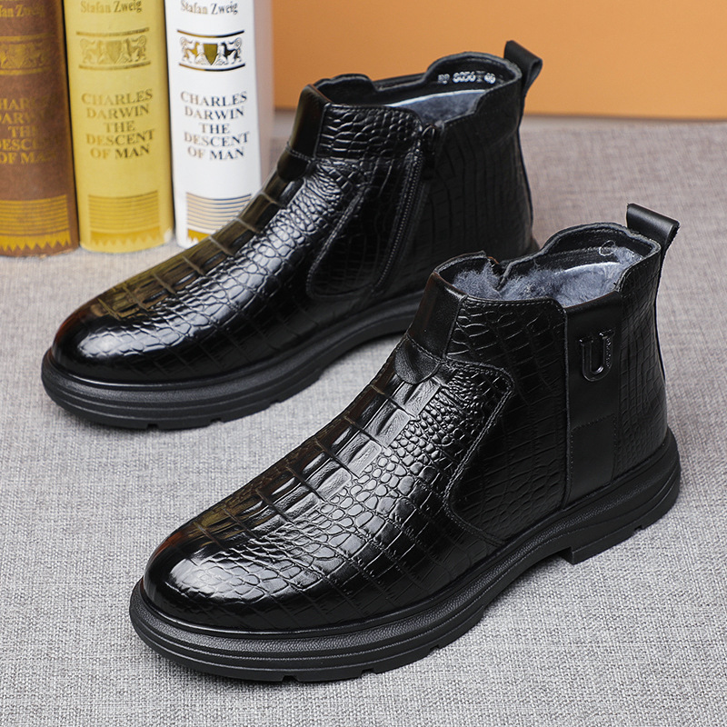 정품 파이프 남성 헤드 레이어 Cowhide 울 14cm 높은 가죽 신발 중간 도움말 마틴 부츠 기관차 따뜻한