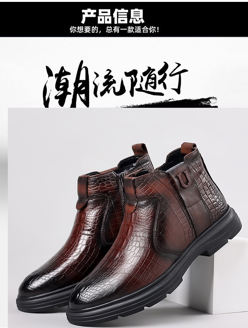 정품 파이프 남성 헤드 레이어 Cowhide 울 14cm 높은 가죽 신발 중간 도움말 마틴 부츠 기관차 따뜻한스토어 가기