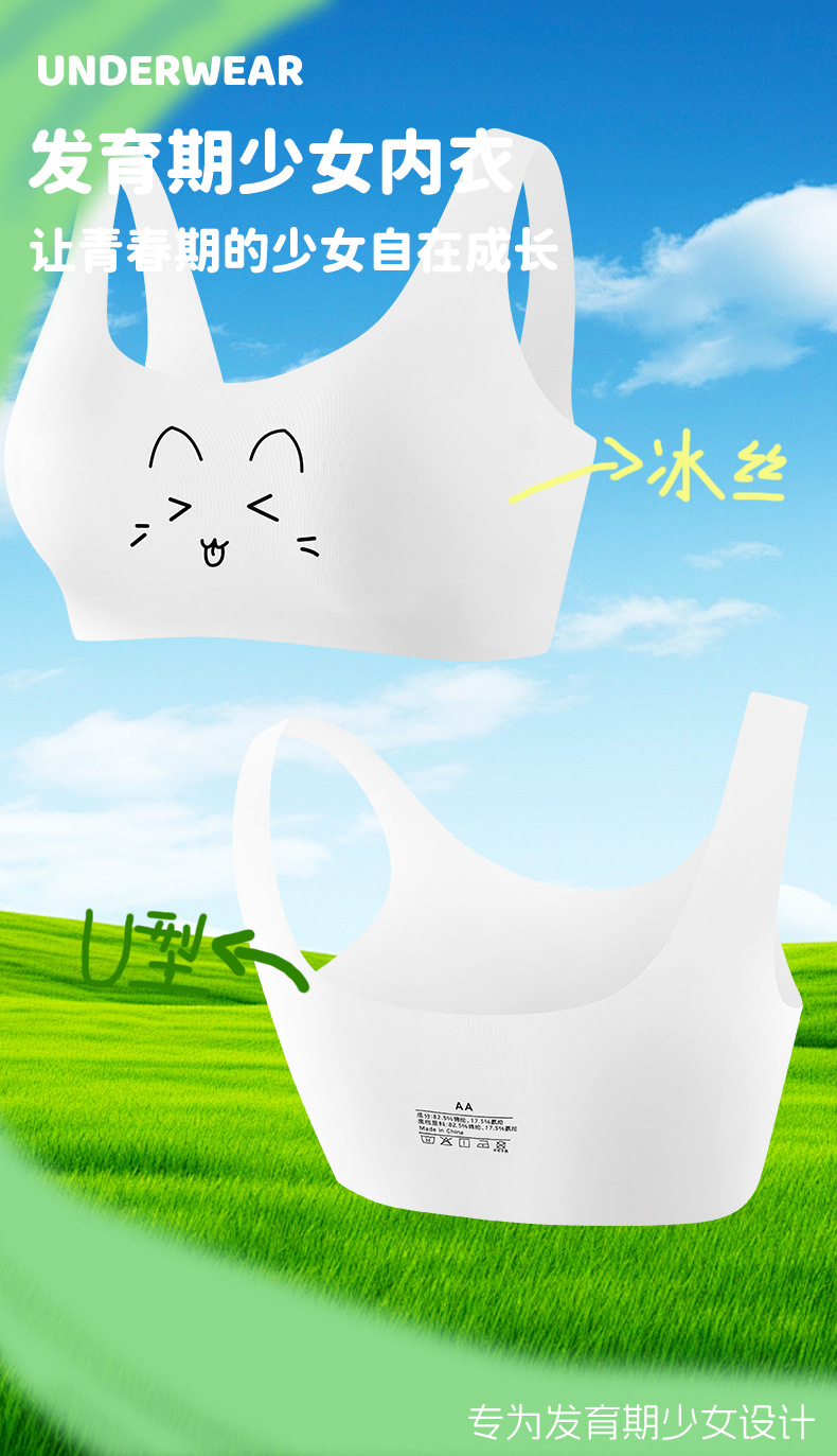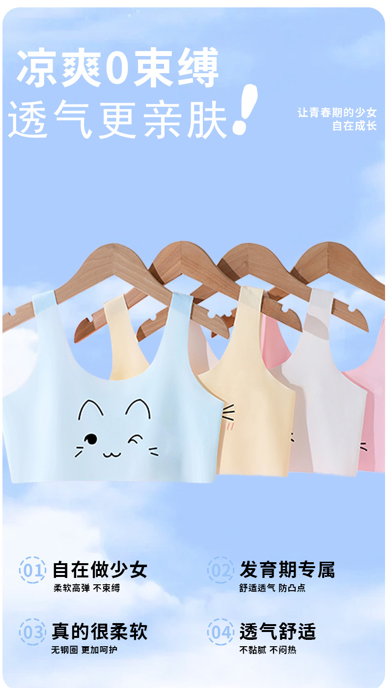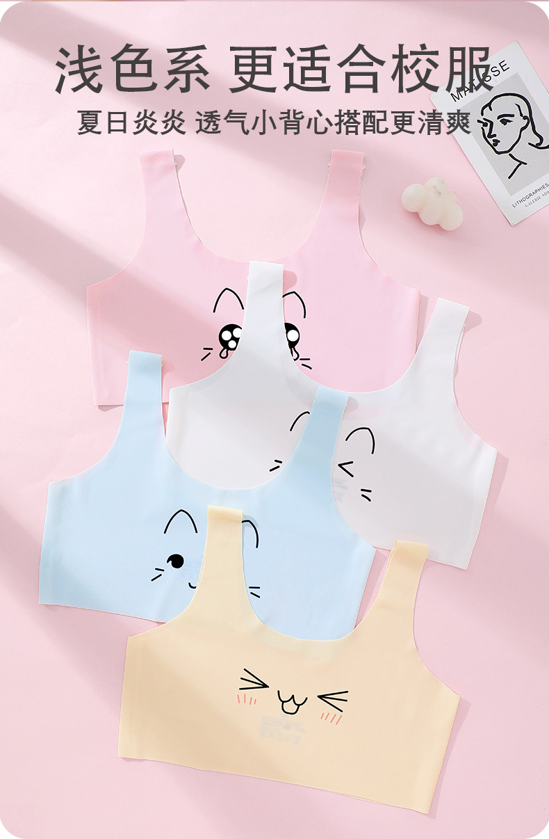 발달 초등학교 소녀 속옷 한 단계 얼음 실크 원활한 통기성 어린 소녀 어린이 조끼 소녀 브래지어스토어 가기