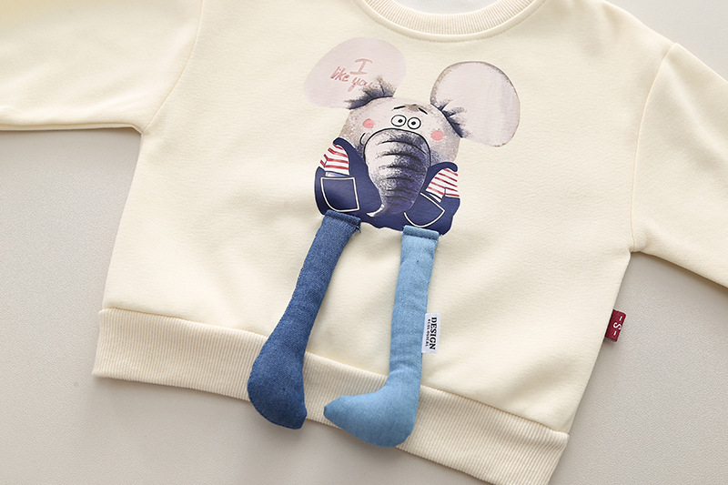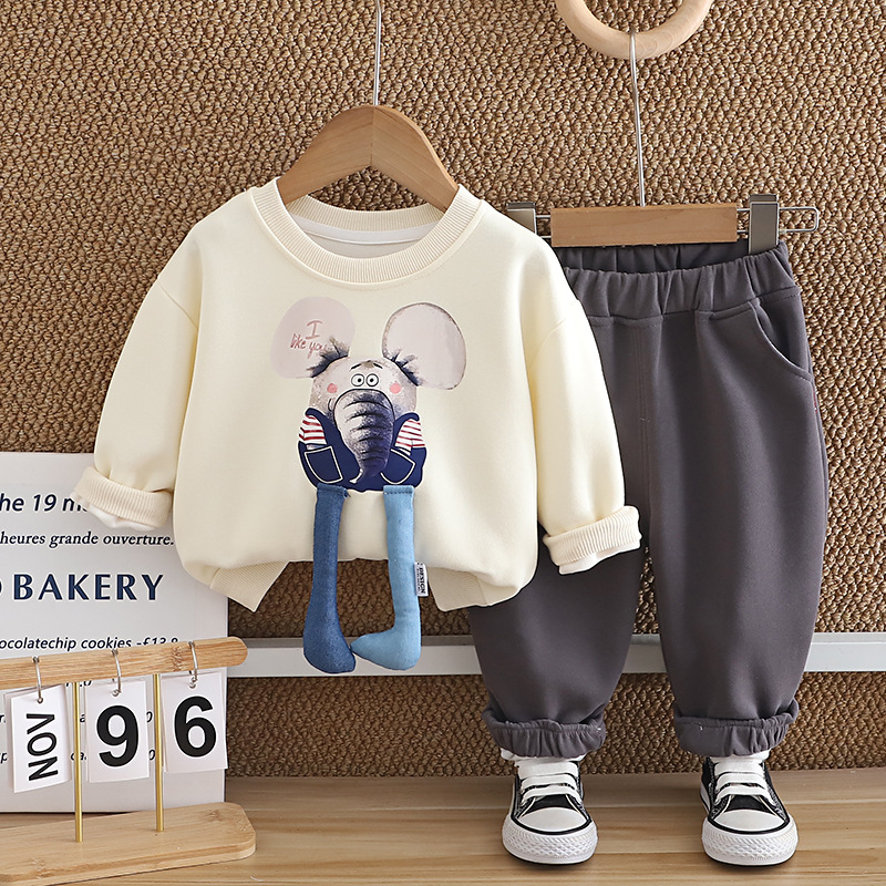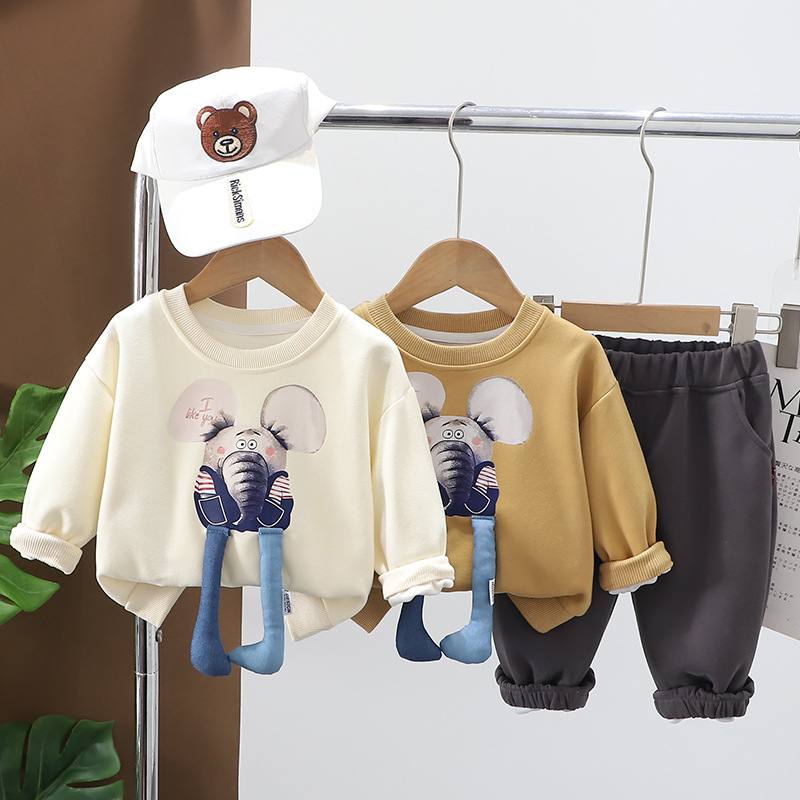 남학생 서양식 가을 세트 봄 · 가을 새 중소형 어린이 잘 생긴 3 차원 코끼리 크루넥 긴팔 투피스 패셔너블 쿨