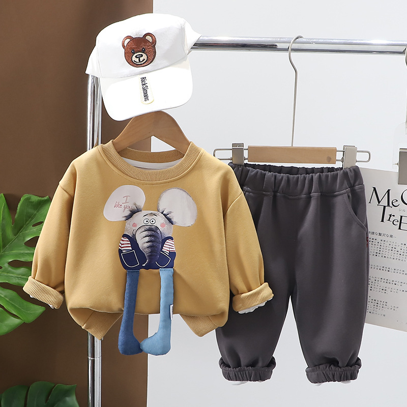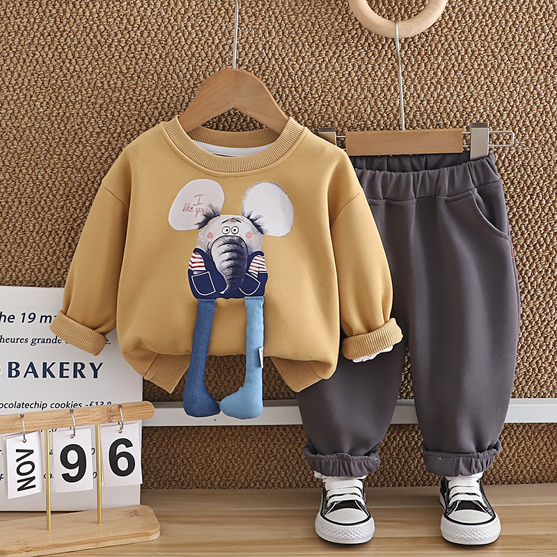 남학생 서양식 가을 세트 봄 · 가을 새 중소형 어린이 잘 생긴 3 차원 코끼리 크루넥 긴팔 투피스 패셔너블 쿨스토어 가기