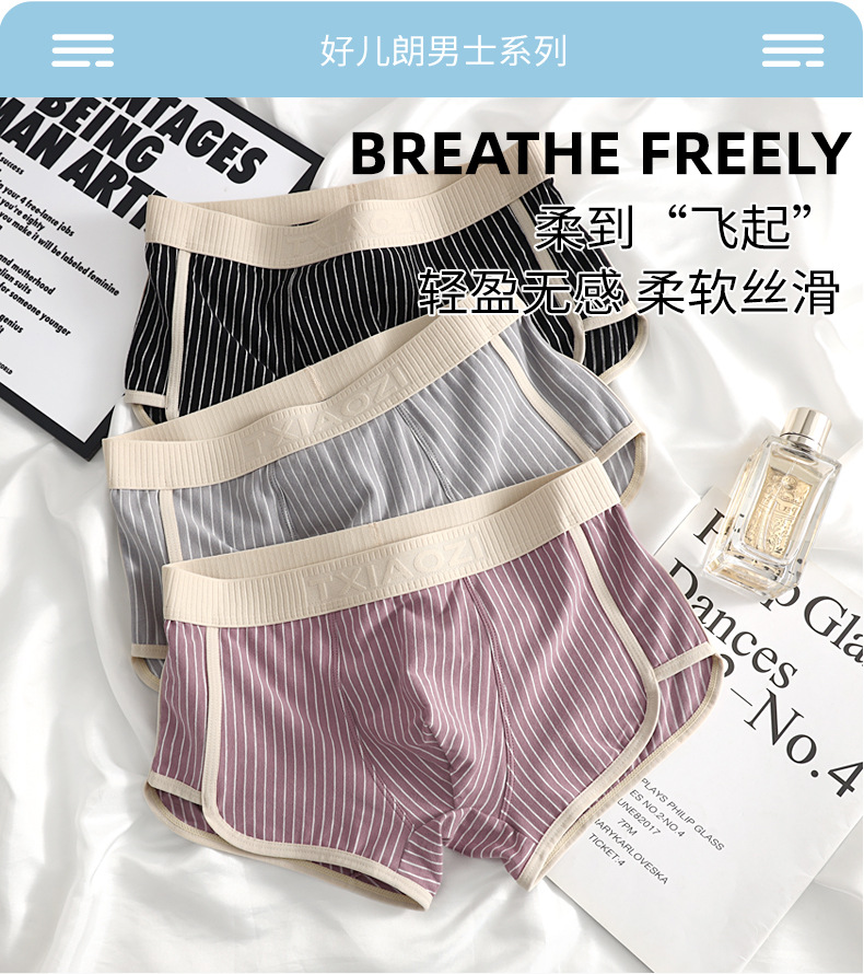 세련된 여름 남자 줄무늬 속옷 코튼 보이즈 복서 편안한 통기성 복서 남자 바지