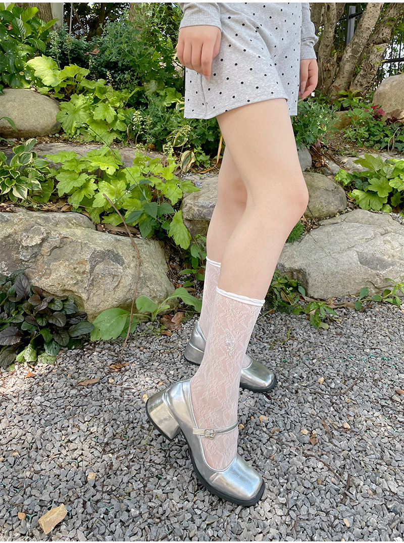 한국 고급 수제 중간 튜브 슬리밍 탄성 송아지 양말 잎 천 스티커 레이스 얇은 통기성 중간 튜브 송아지 양말스토어 가기