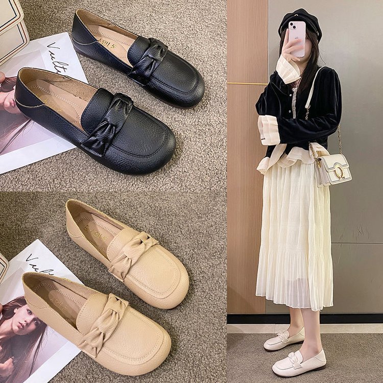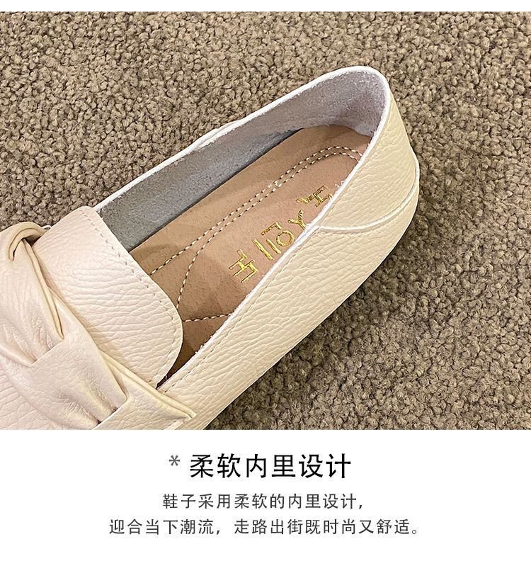 정품 부드러운 가죽 플랫 슈즈 여성의 2024 봄 새로운 투웨어 부드러운 밑창 프랑스 콩 슈즈 마더 슈즈 로퍼스토어 가기
