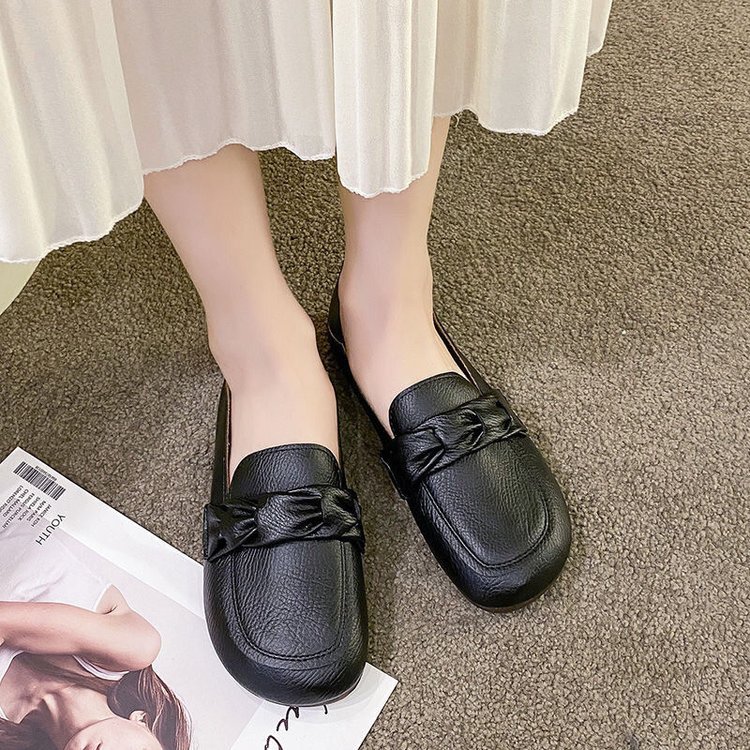 정품 부드러운 가죽 플랫 슈즈 여성의 2024 봄 새로운 투웨어 부드러운 밑창 프랑스 콩 슈즈 마더 슈즈 로퍼