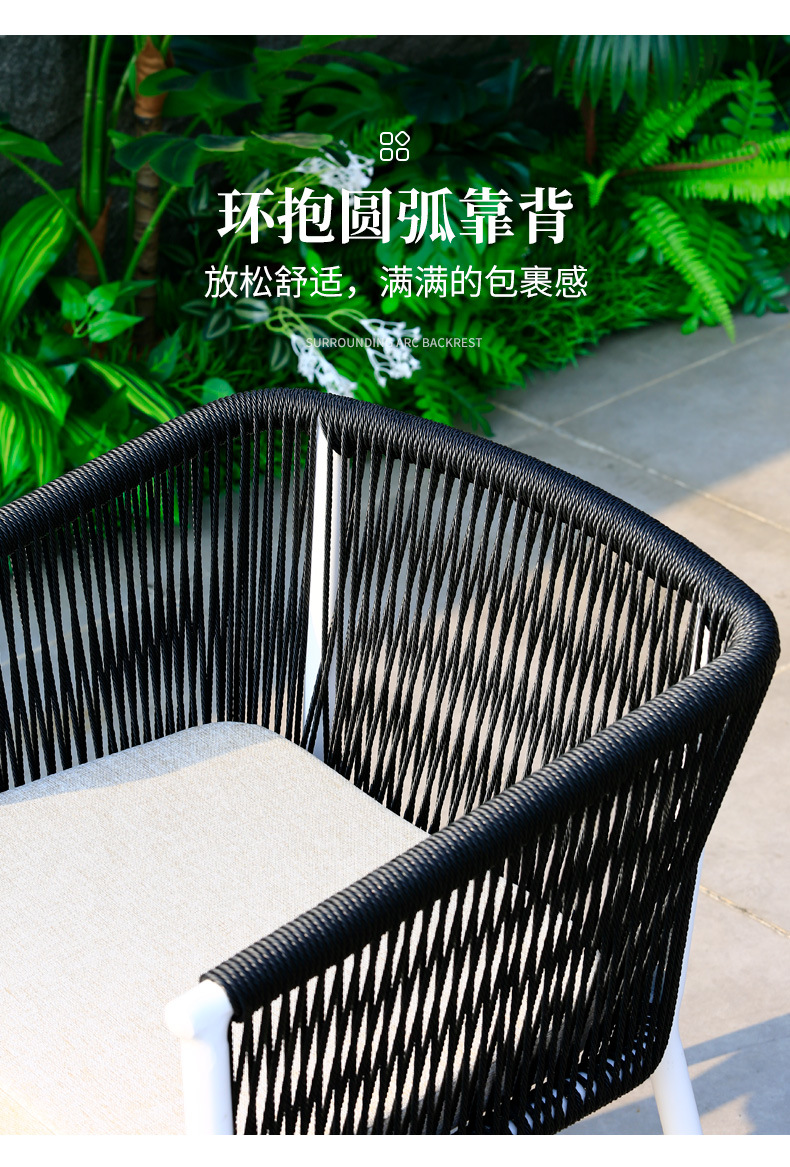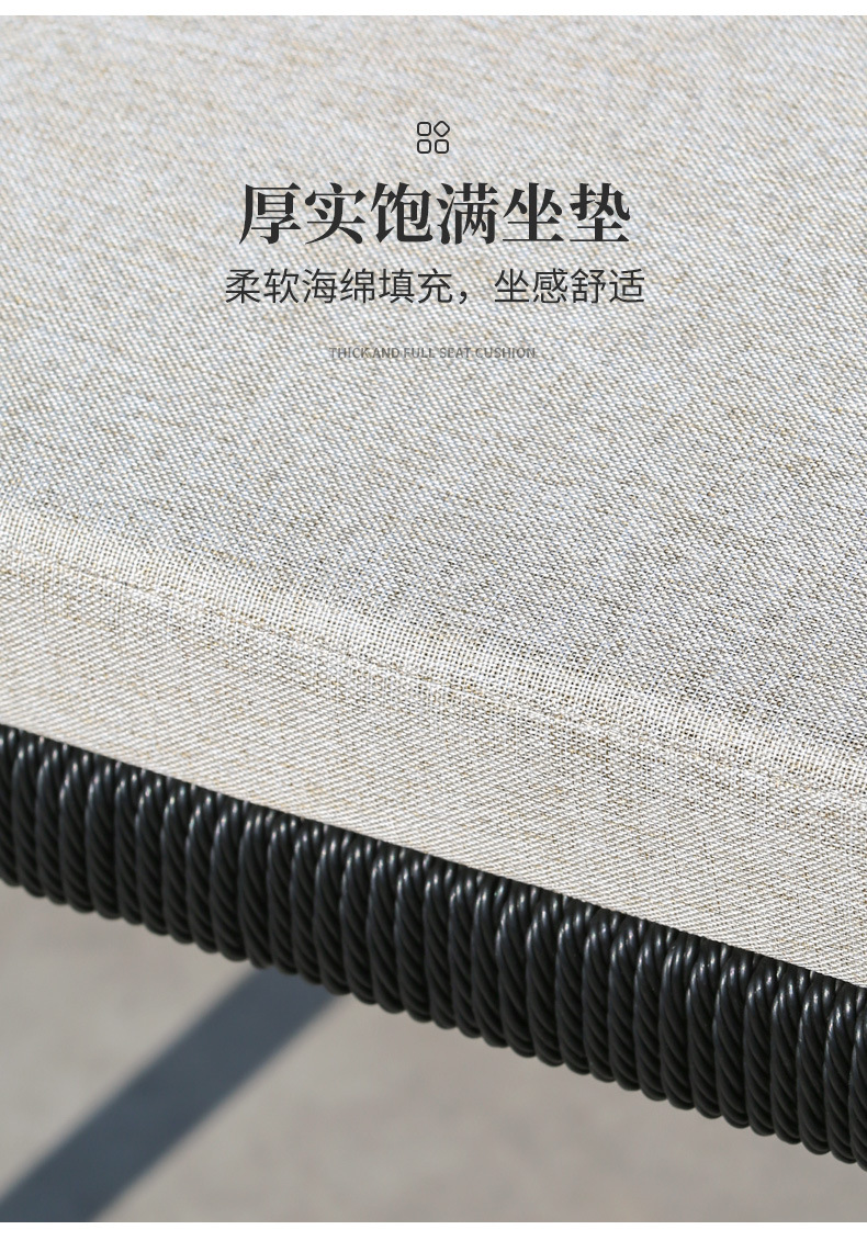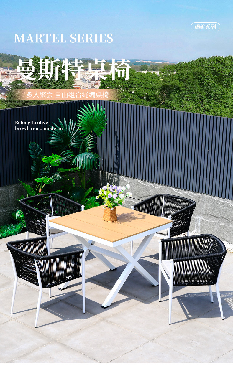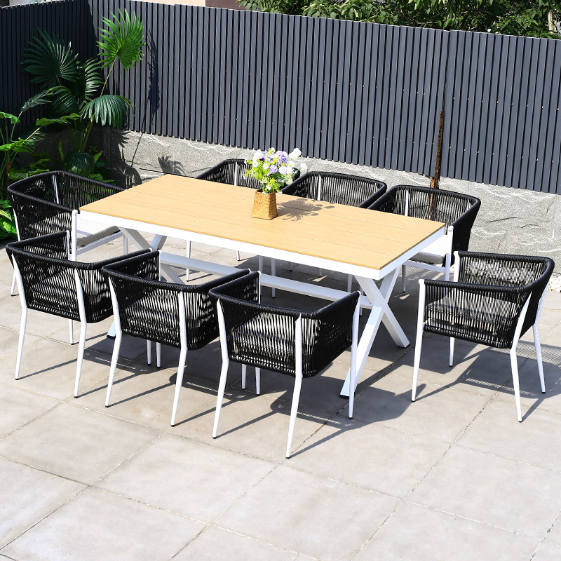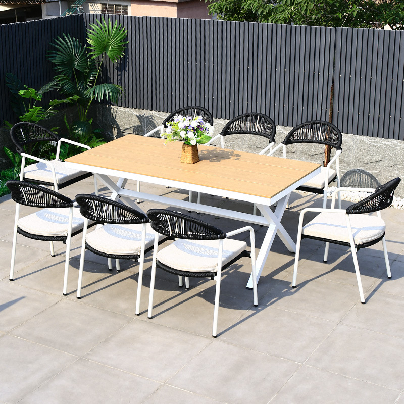 야외 테이블과 의자 안뜰 야외 정원 등나무 등나무 의자 조합 방수 선 스크린 갑판 테이블 캐주얼 식탁 세트