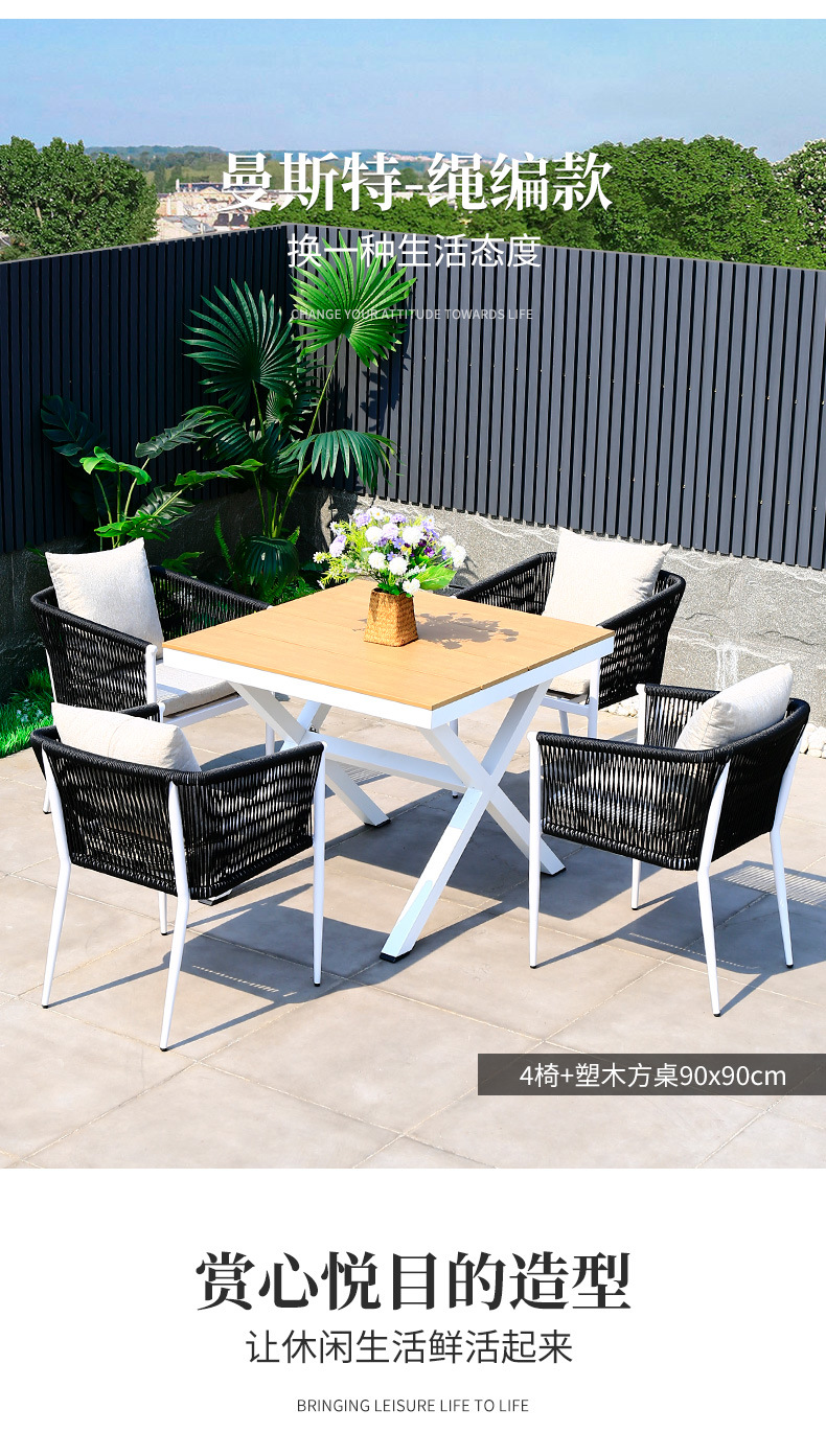 • 맨스터 의자 4개 + 90x90cm 플라스틱 나무 사각 테이블