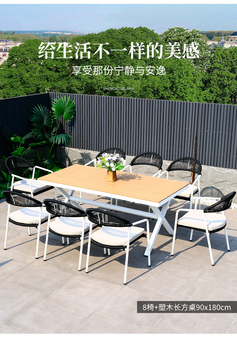 • 맨스터 의자 8개 + 90x180cm 플라스틱 목재 직사각형 테이블