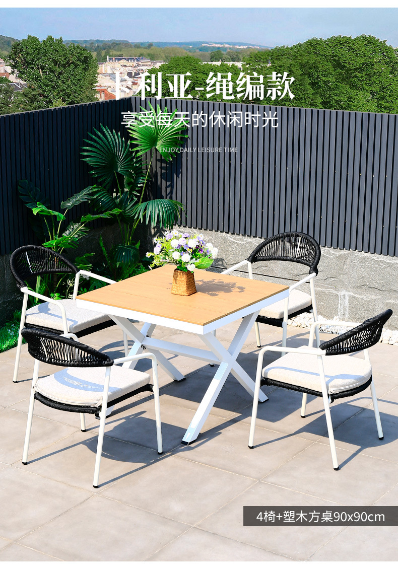 • 카리아 의자 4개 + 90x90cm 플라스틱 나무 사각 테이블
