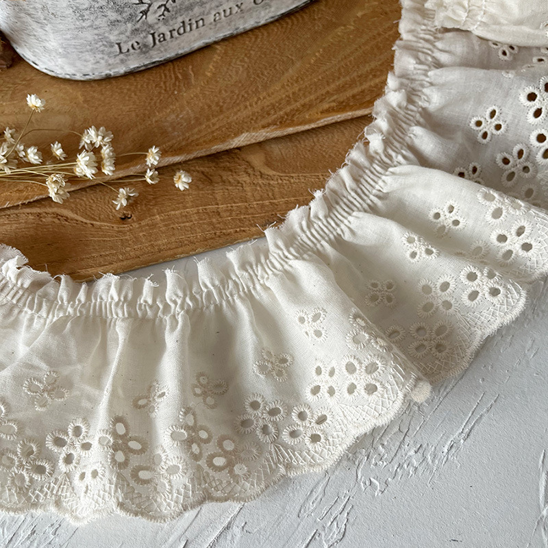 순수한면 자수 화이트 레이스 액세서리 스커트 헴 칼라 커프스 코튼 로리타 수제 패브릭 와이드