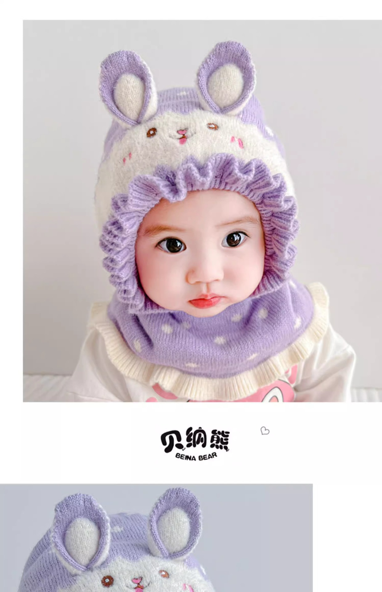아기 모자 가을과 겨울 스카프 올인원 목도리 귀 보호 캡 귀여운 아기 따뜻한 울 모자 소년 소녀 용스토어 가기