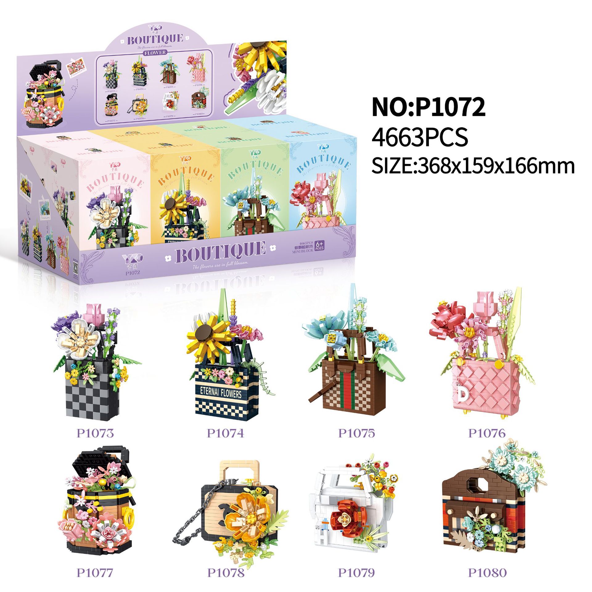 Yu Gao 마이크로 입자 빌딩 블록 꽃 영원한 꽃 조립 장난감 P1072-P1080 꽃 바구니 가방 도매 세대스토어 가기