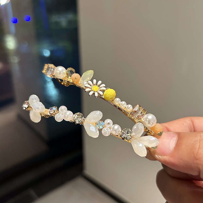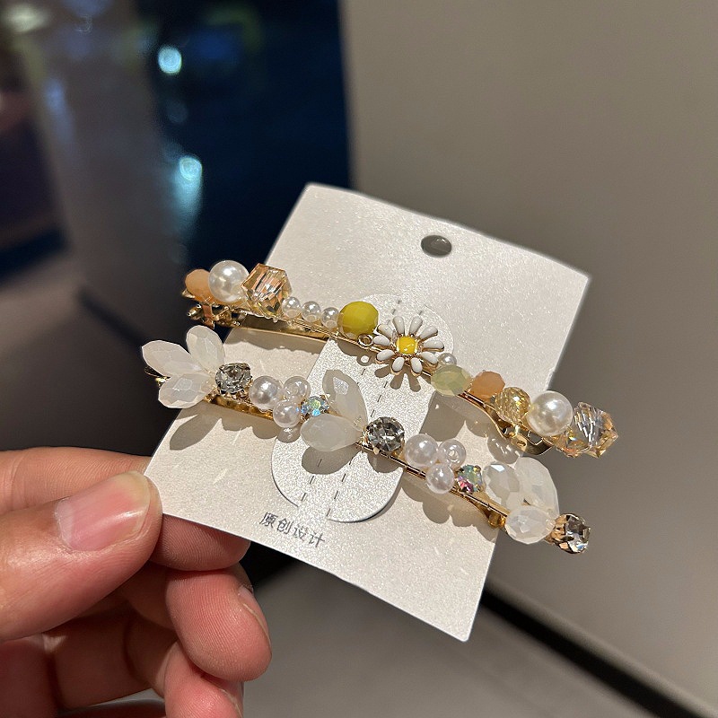 한국 기질 간단한 올 매치 헤어핀 고급 밝은 다이아몬드 크리스탈 사이드 클립 손으로 짠 덕빌 클립 클립 클립 클립 클립스토어 가기