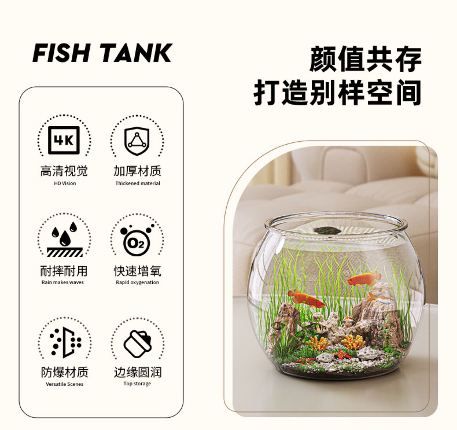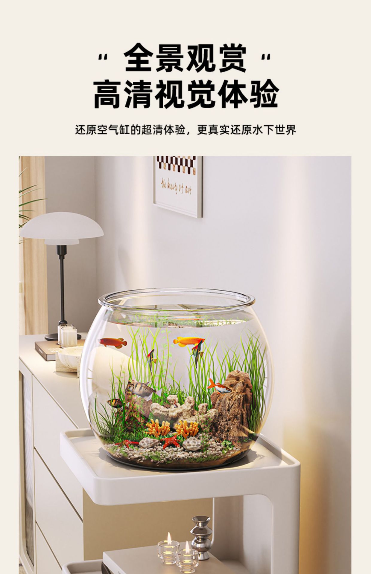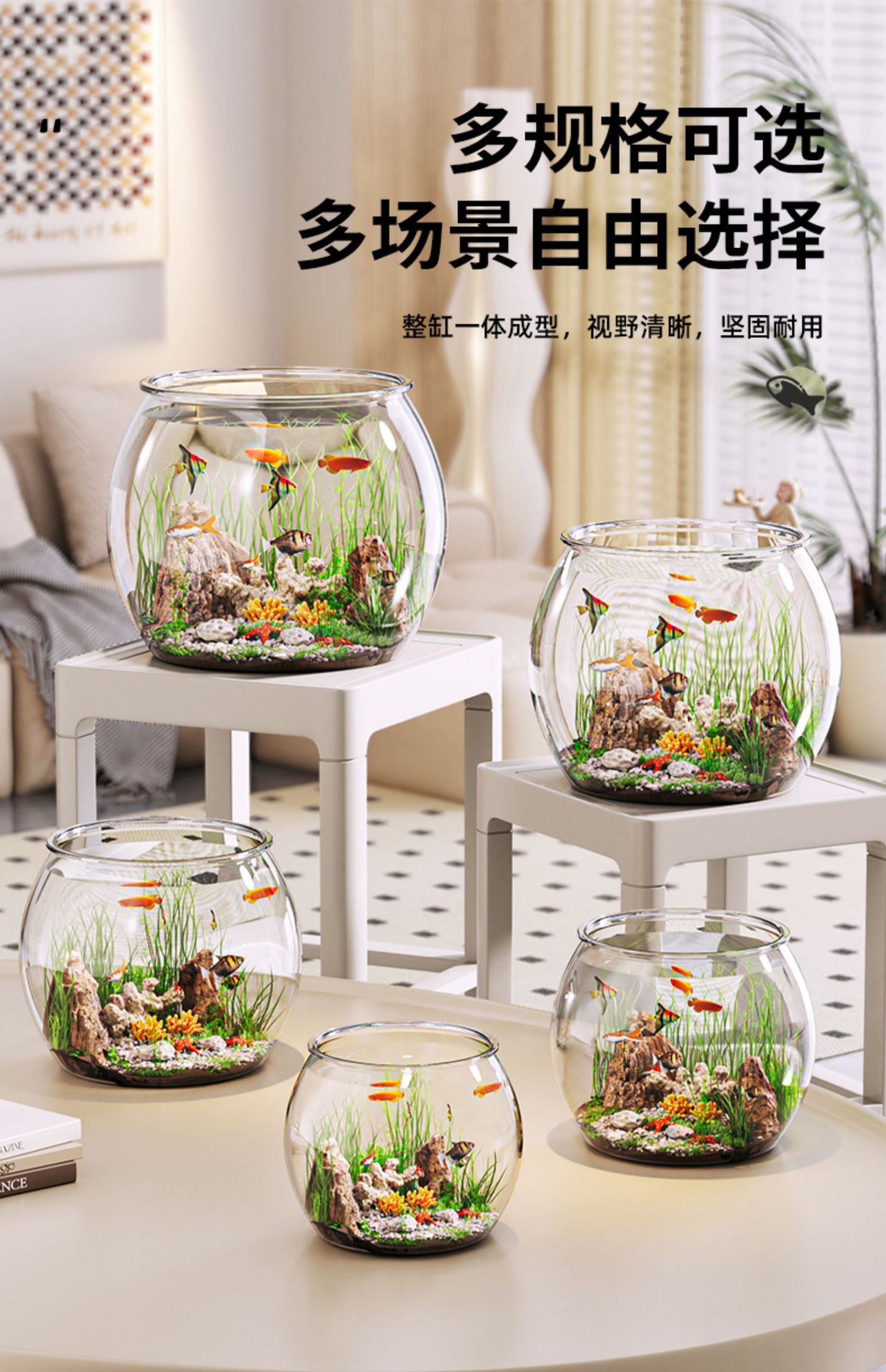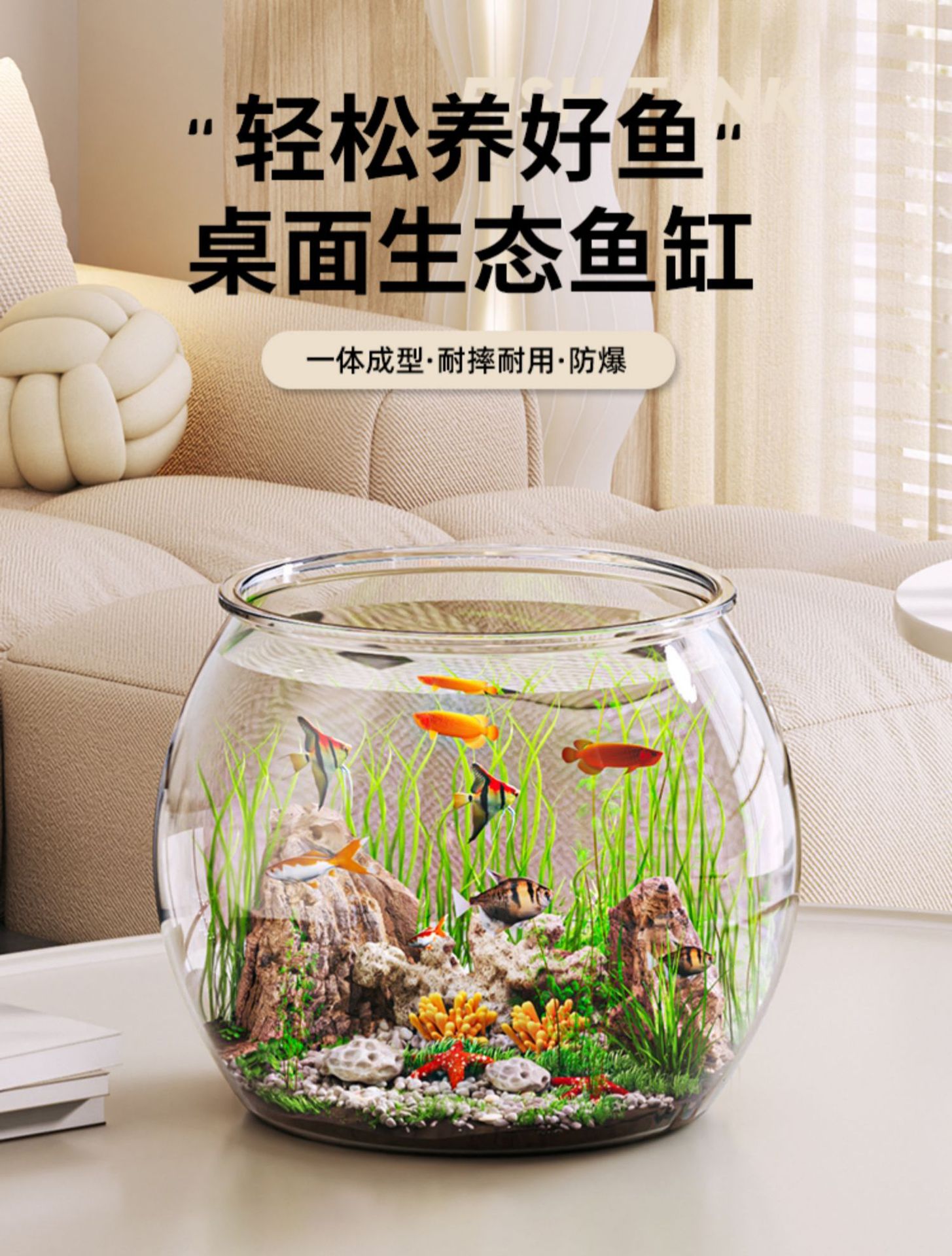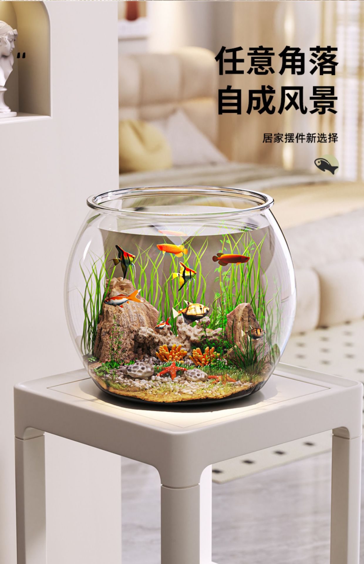 탁상용 생태 어항, 내구성이 뛰어나고 깨지지 않는 플라스틱 원형 가정용 금붕어 사육 어항, 미니어처 수족관스토어 가기