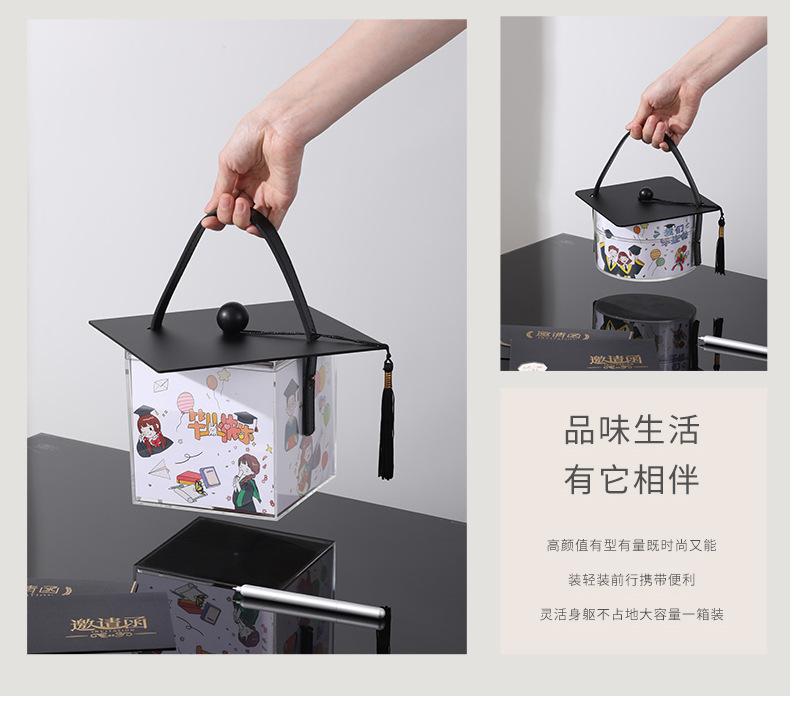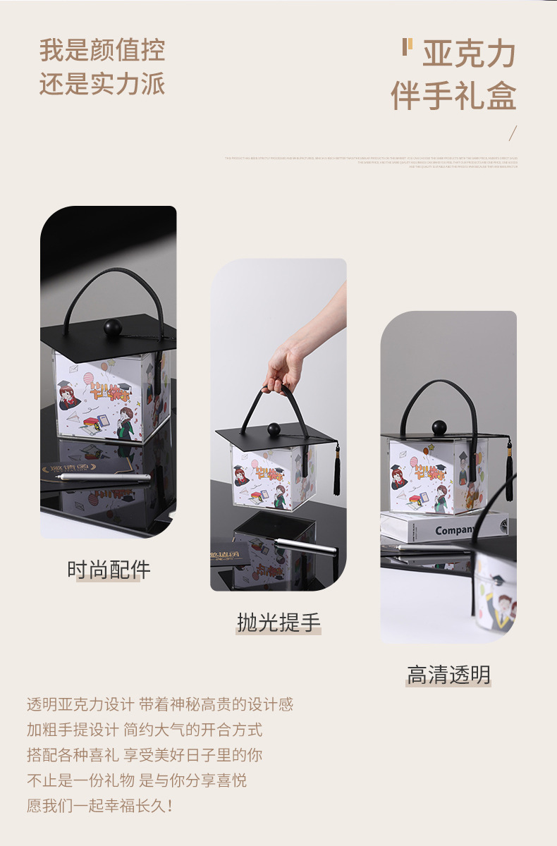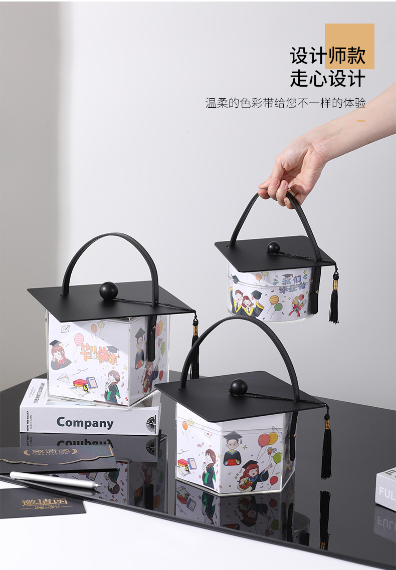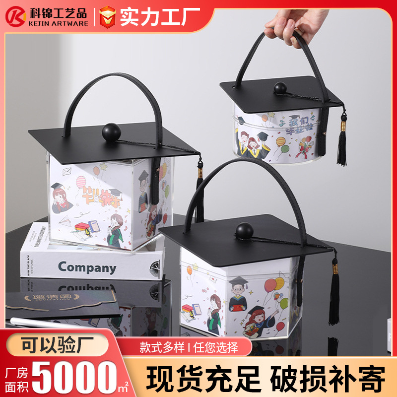 새로운 아크릴 상자 아기 학교 입학 감사 연회 사탕 선물 상자 2025 박사 모자 휴대용 선물 상자스토어 가기