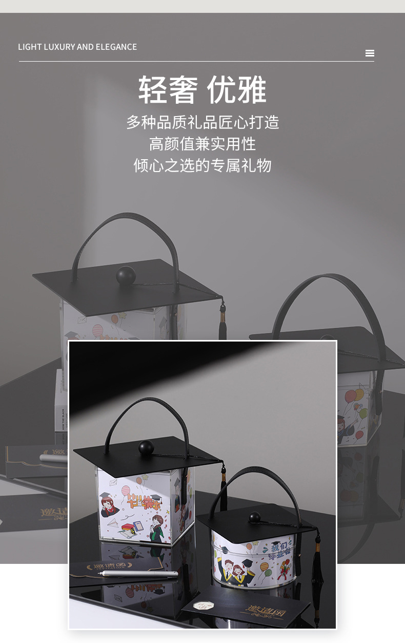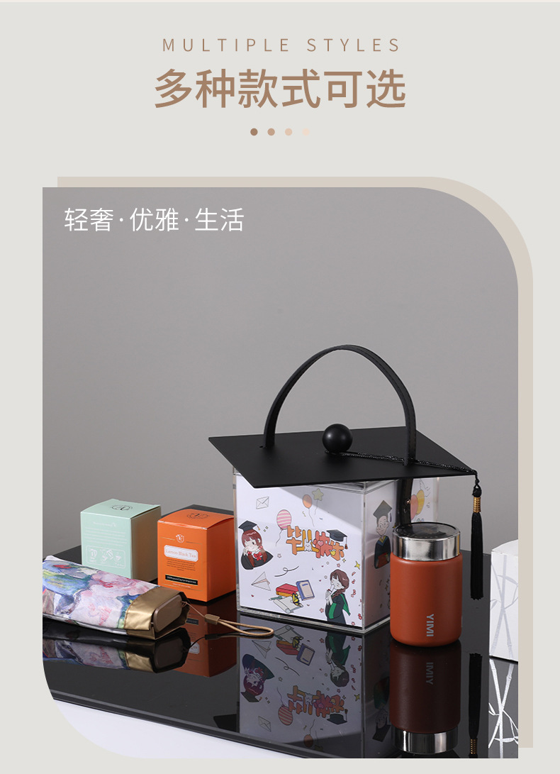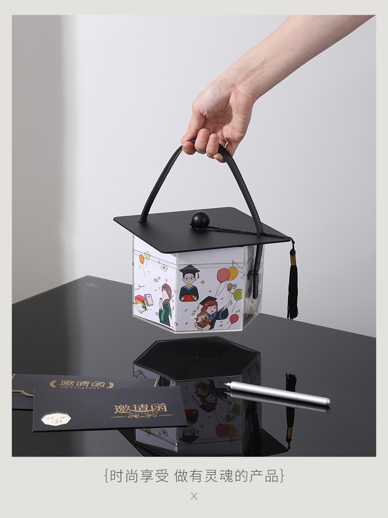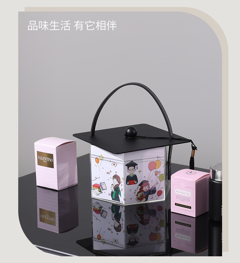 새로운 아크릴 상자 아기 학교 입학 감사 연회 사탕 선물 상자 2025 박사 모자 휴대용 선물 상자스토어 가기