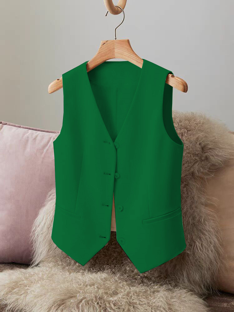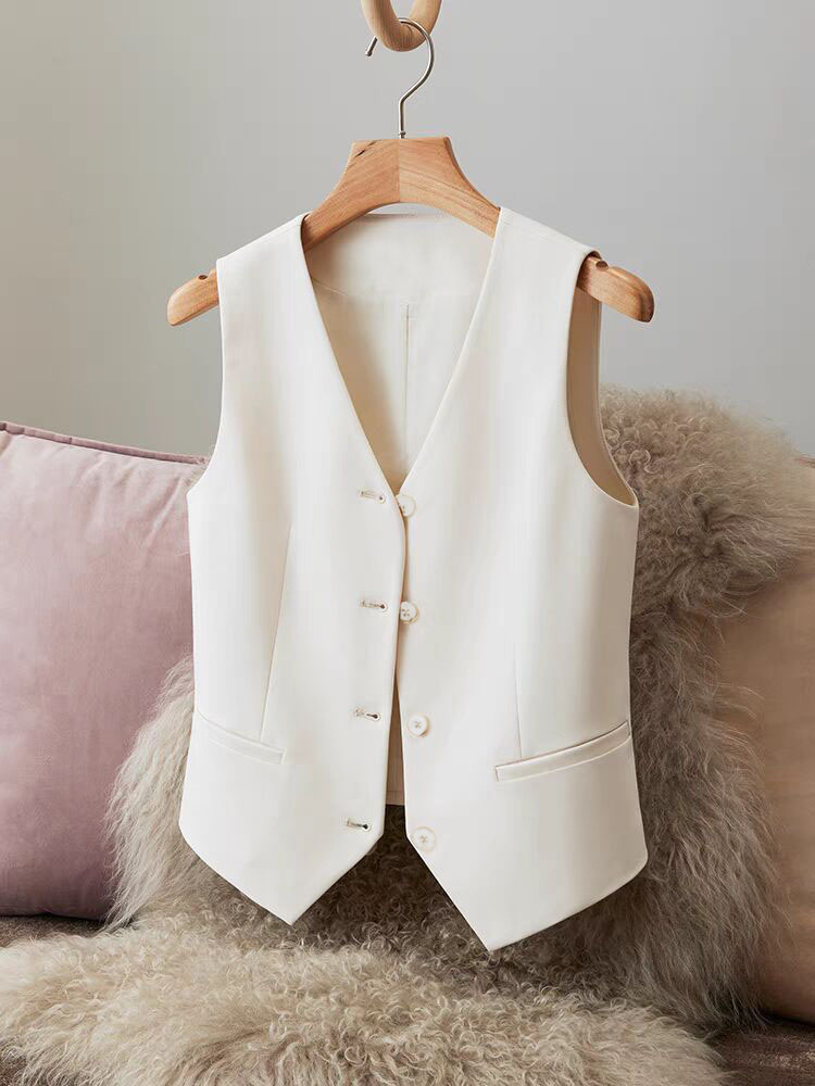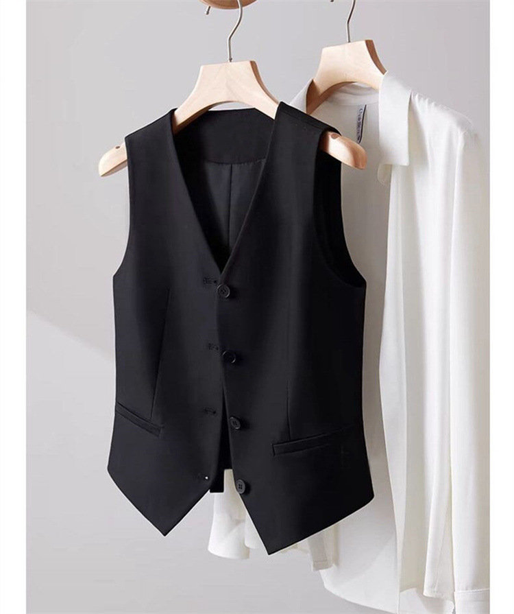 2025 봄 스타일리쉬한 통근룩 폴리에스터 숏 카라리스 가디건 여성 조끼 포켓 싱글버튼 멀티버튼스토어 가기