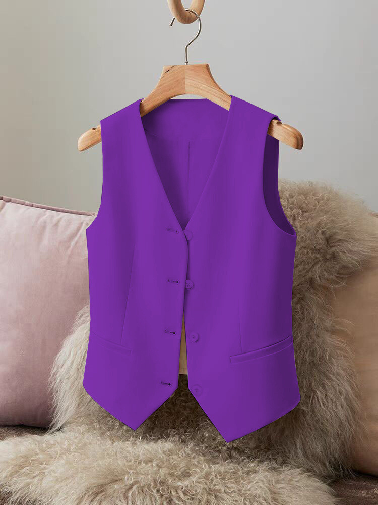2025 봄 스타일리쉬한 통근룩 폴리에스터 숏 카라리스 가디건 여성 조끼 포켓 싱글버튼 멀티버튼