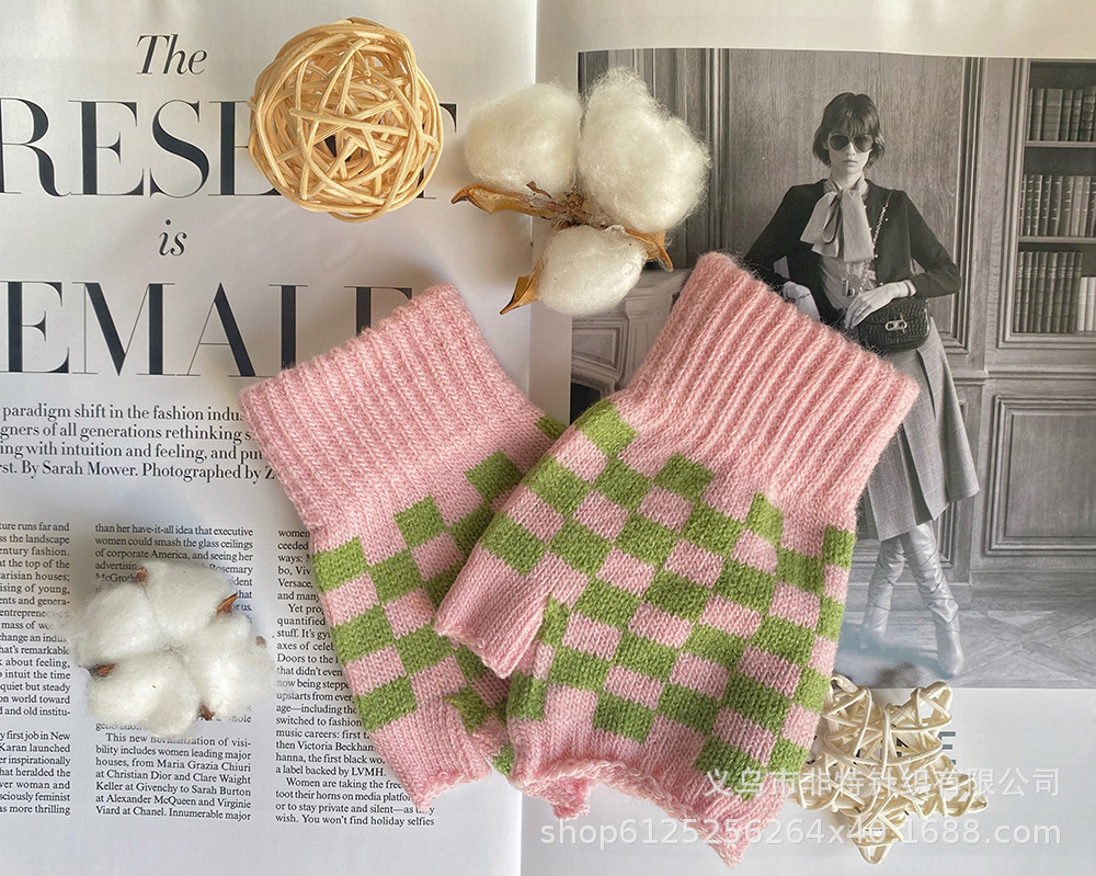 전자 상거래 핫 마이닝 아크릴 캐시미어 손가락 누출 장갑 귀여운 멀티 사양 컬러 따뜻한 장갑 여성 제조 업체 도매스토어 가기