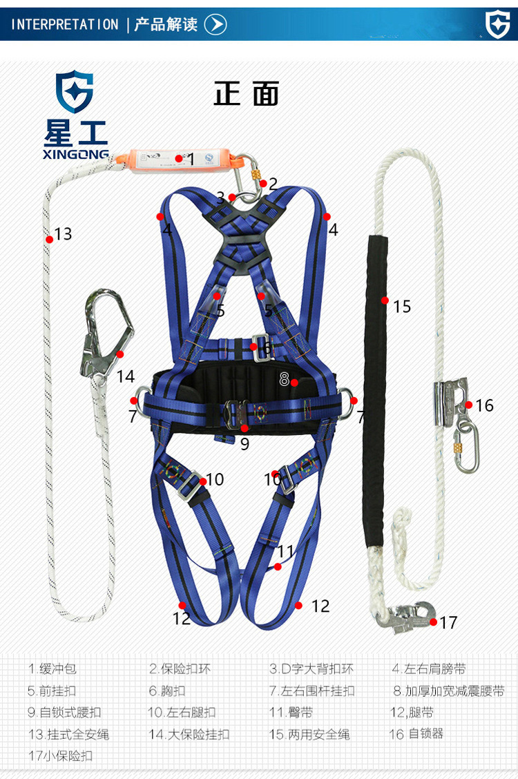 Xinggong 공중 작업 안전 벨트 야외 건설 안전 로프 5 점 전신 전기 이중 안전 버퍼 벨트스토어 가기