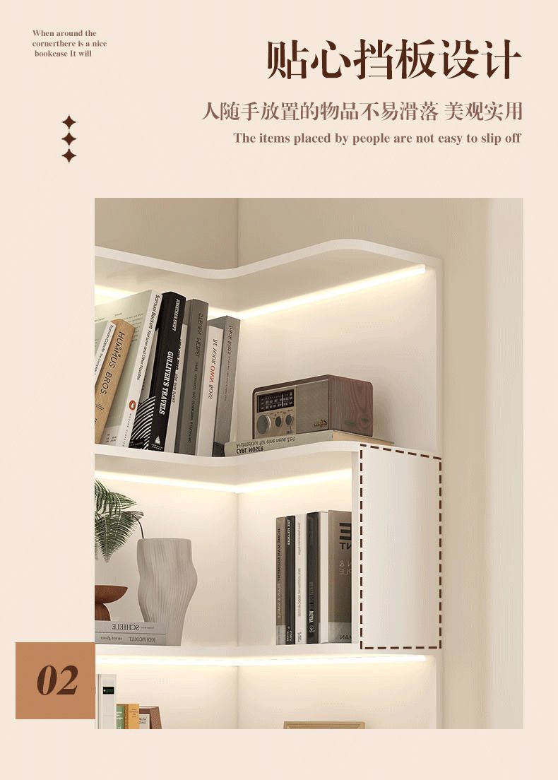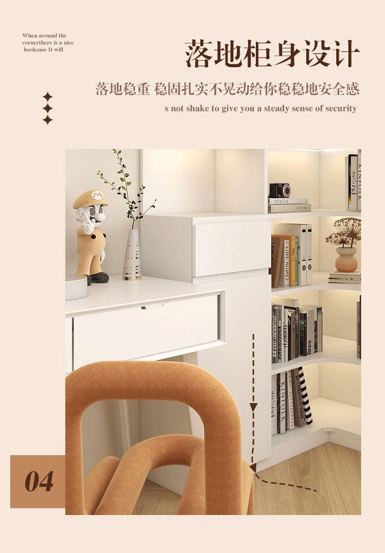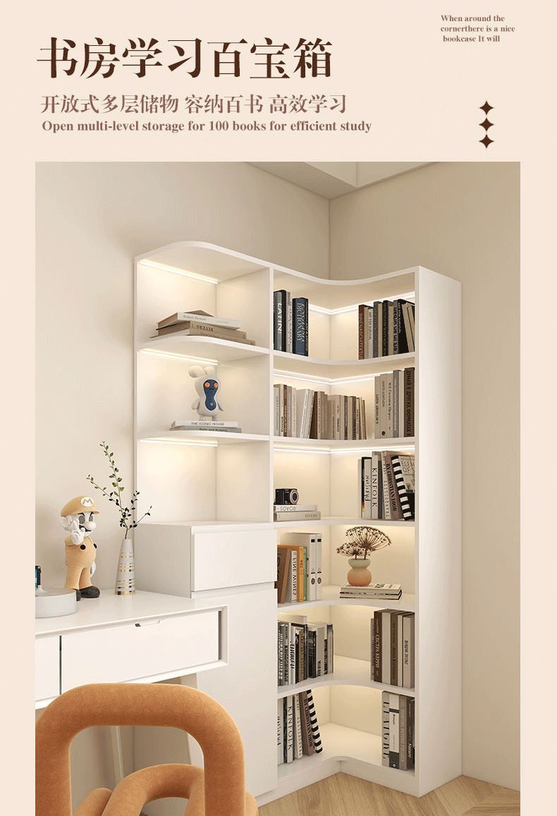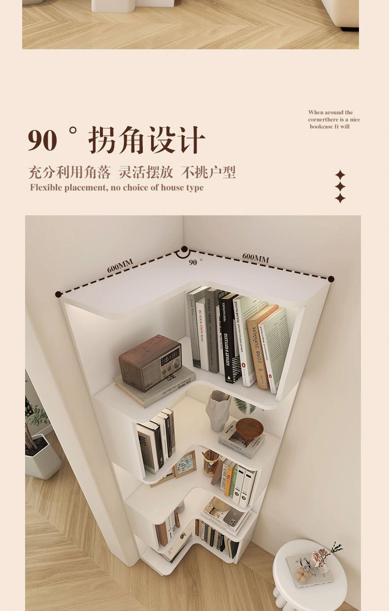 크림 스타일 코너 책장 작은 아파트 거실 보관 캐비닛 어린이 침실 홈 바닥 책장 벽 보관 캐비닛