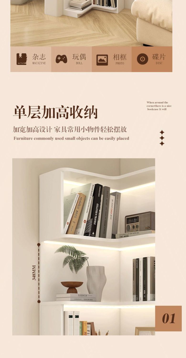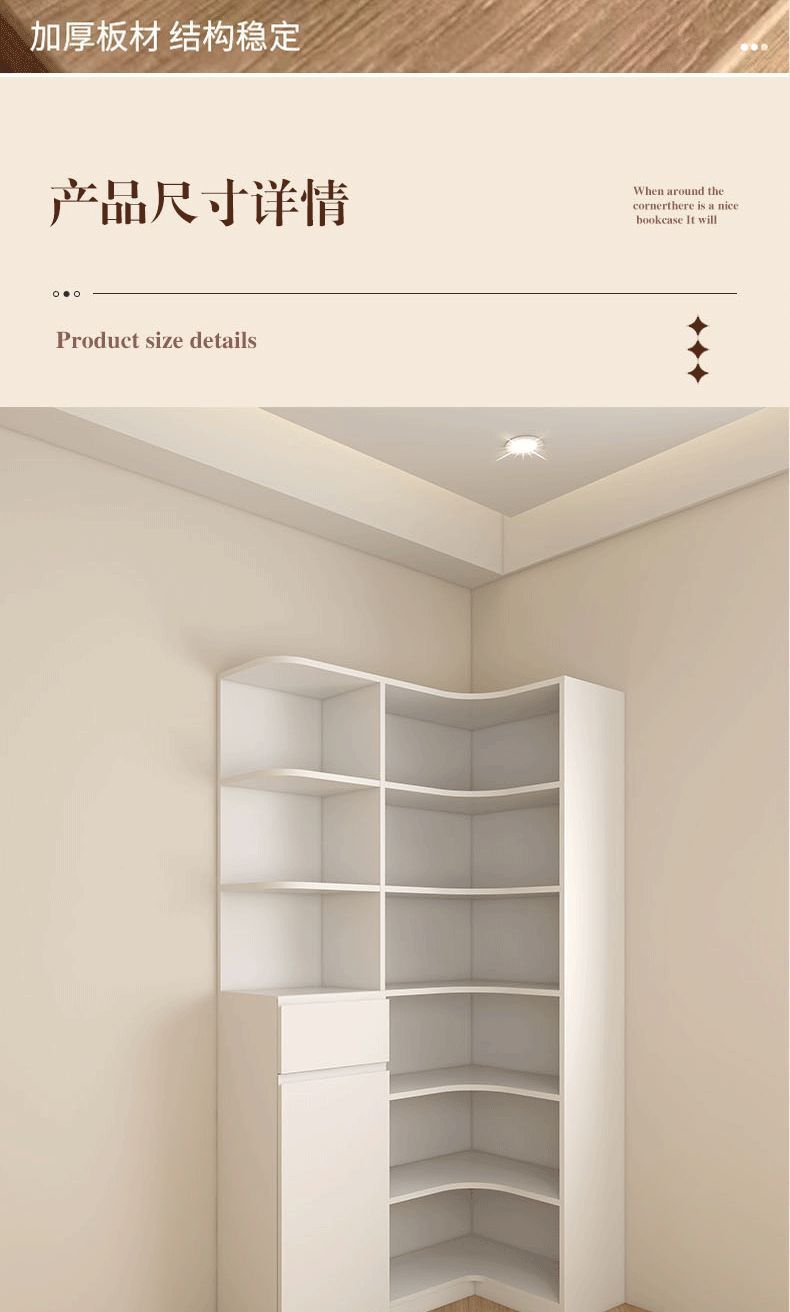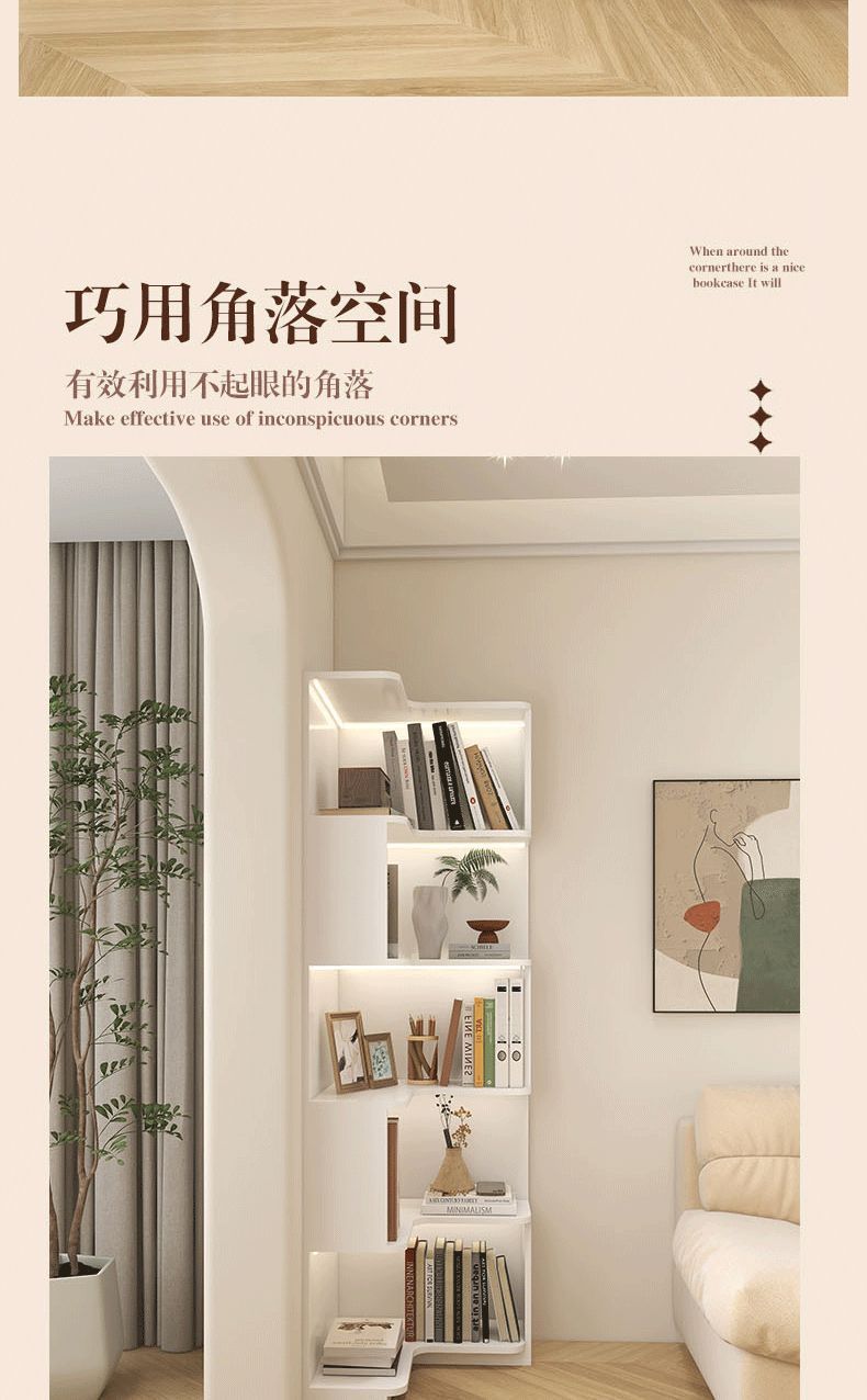 크림 스타일 코너 책장 작은 아파트 거실 보관 캐비닛 어린이 침실 홈 바닥 책장 벽 보관 캐비닛스토어 가기