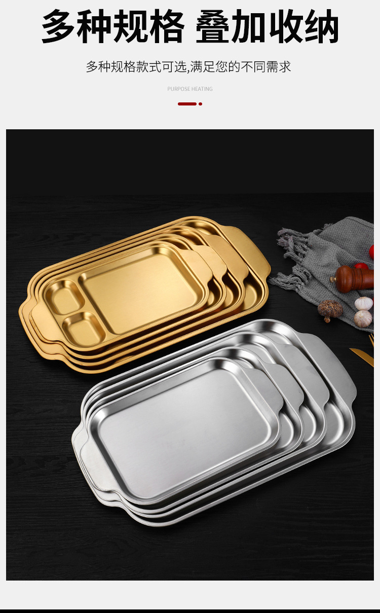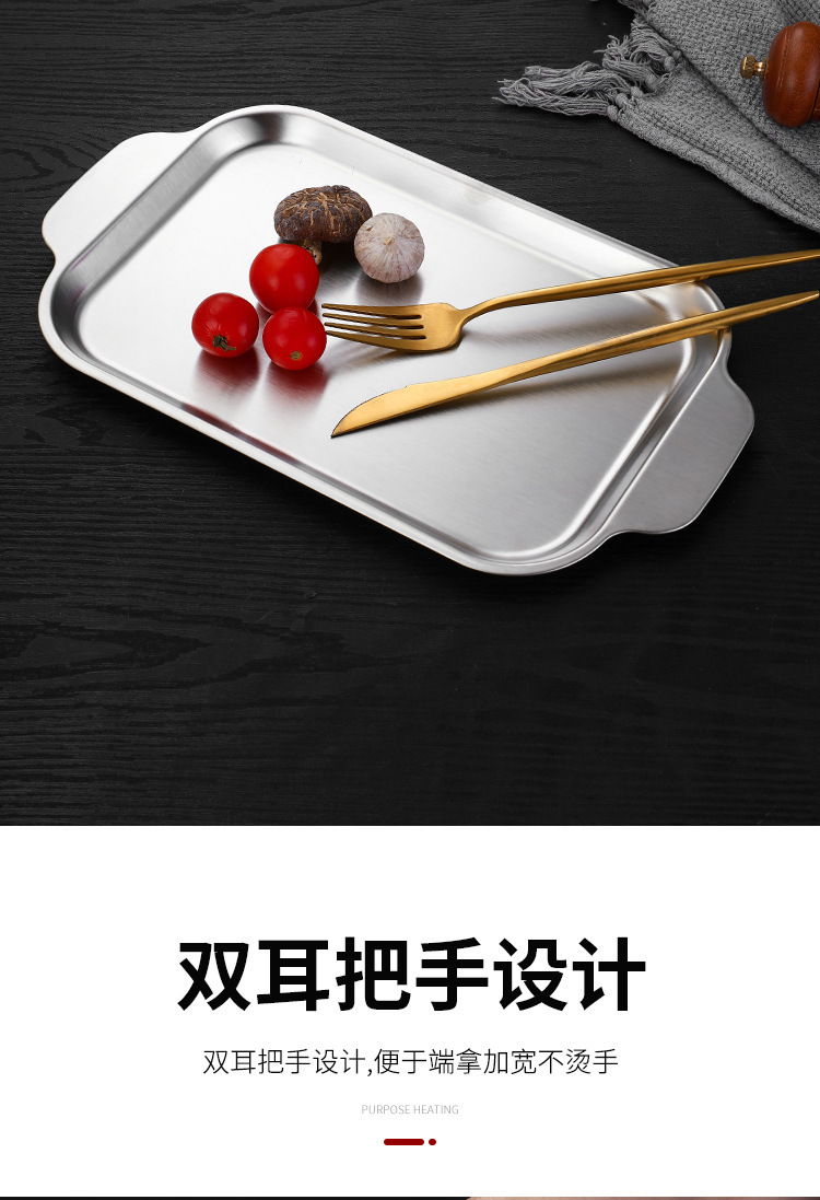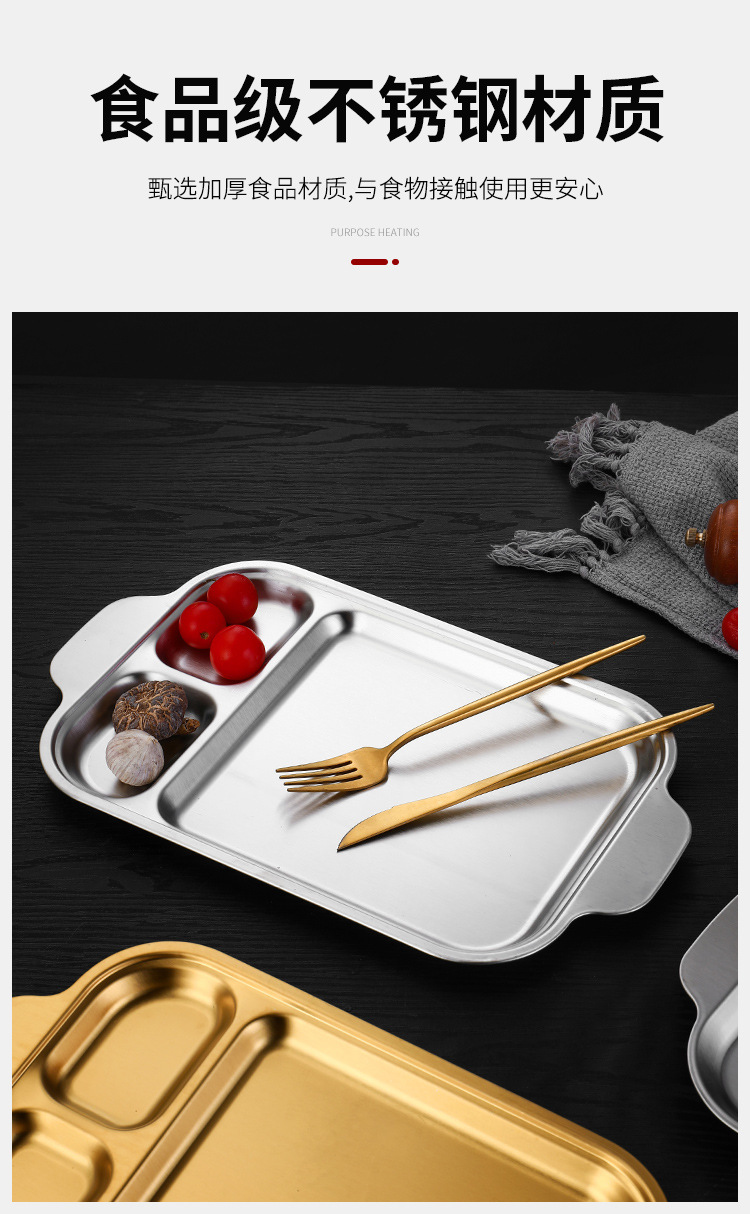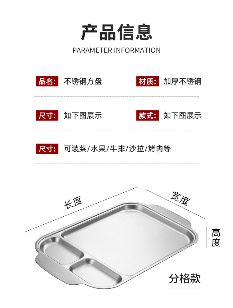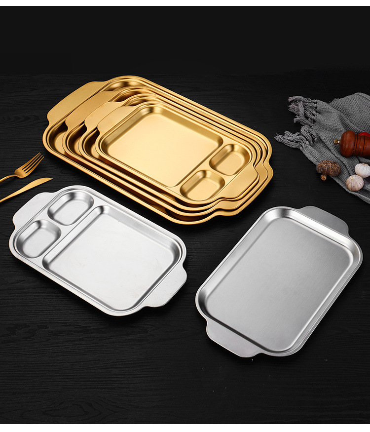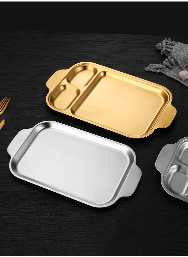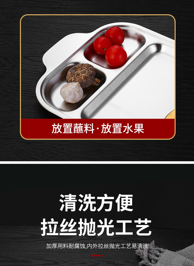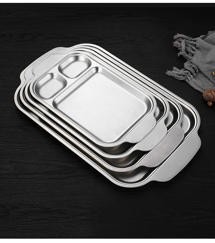 304 스테인레스 스틸 평평한 바닥 스퀘어 플레이트 한국식 로티 세리 딥 플레이트 귀 분할 구획 조미료 3 칸 소스 플레이트