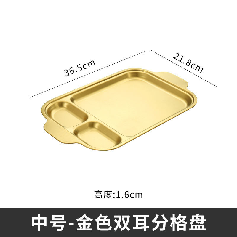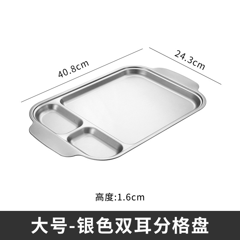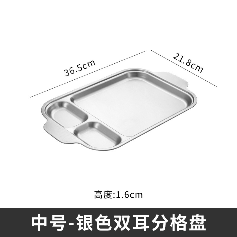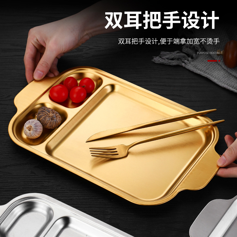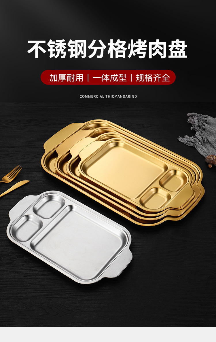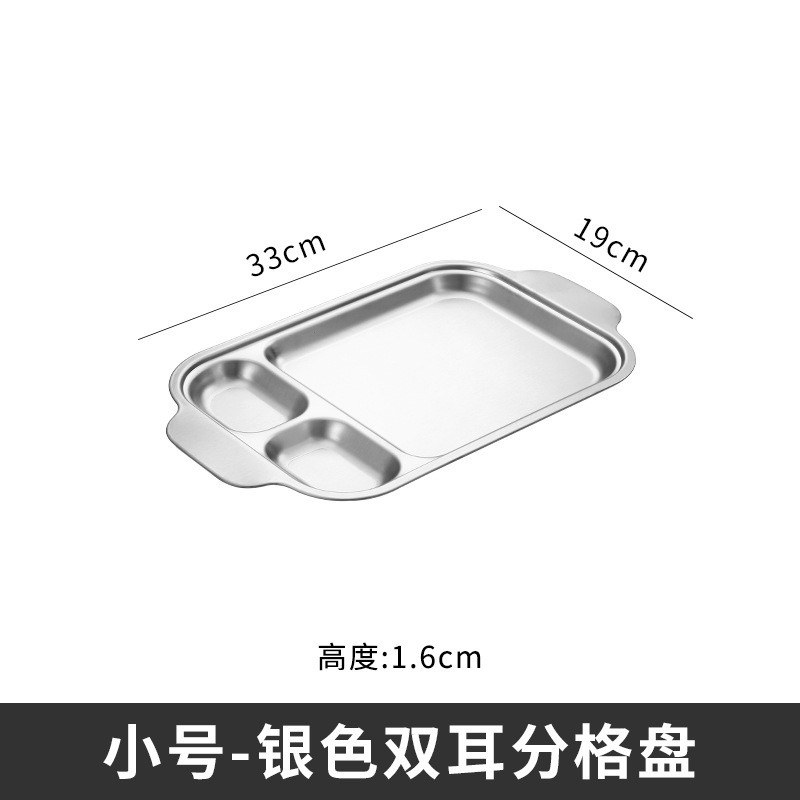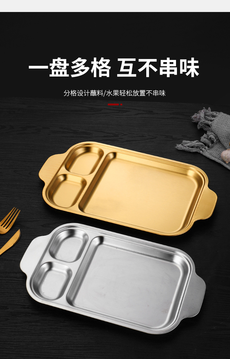 304 스테인레스 스틸 평평한 바닥 스퀘어 플레이트 한국식 로티 세리 딥 플레이트 귀 분할 구획 조미료 3 칸 소스 플레이트스토어 가기