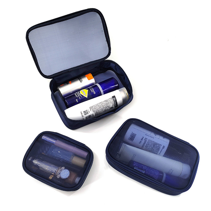 새로운 화장품 가방 휴대용 메쉬 메이크업 가방 대용량 여행 워시 수하물 데이터 케이블 저장 가방