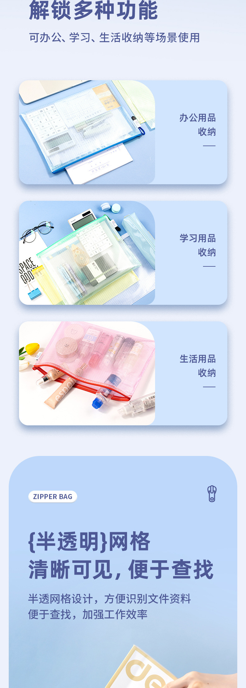 델리 63469/63480 파일 가방 투명 메쉬 지퍼 가방 정보 가방 방수 보관 가방 학생 A4A5스토어 가기