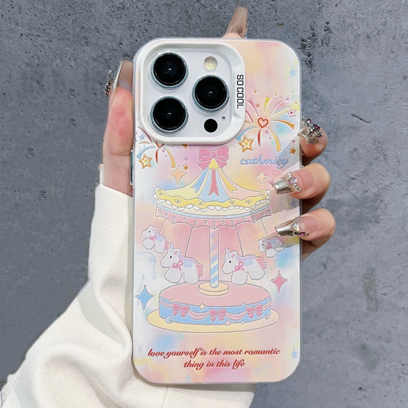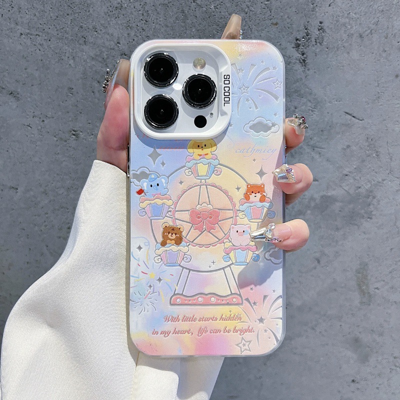 摩天轮适用小米14pro手机壳华为mate60磨砂彩银苹果13卡通红米K70