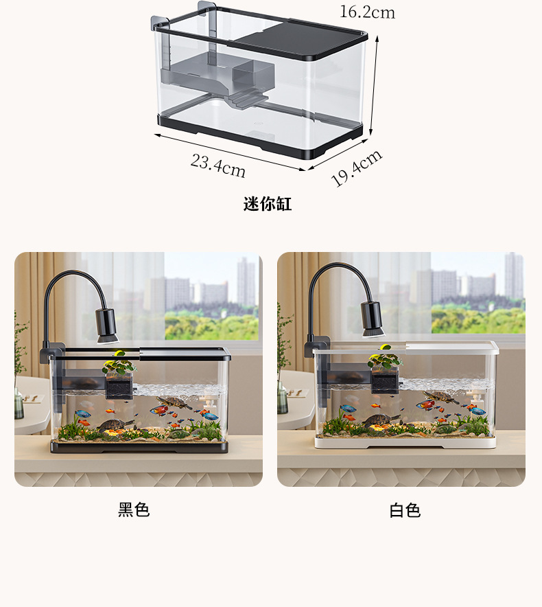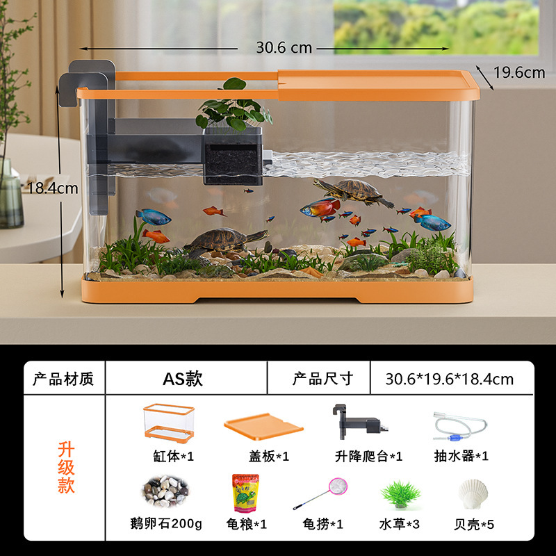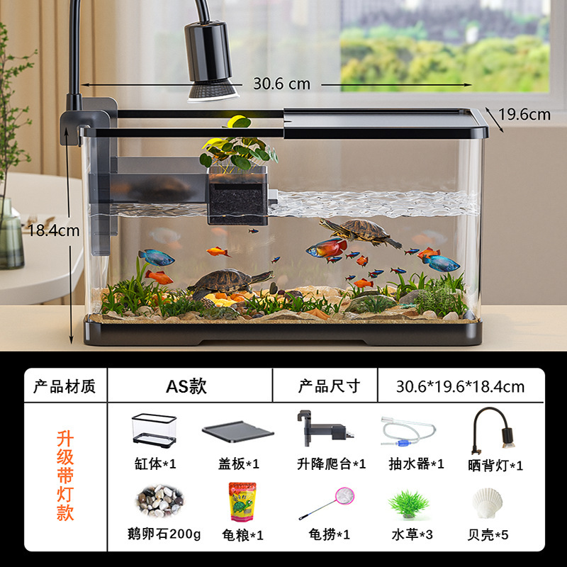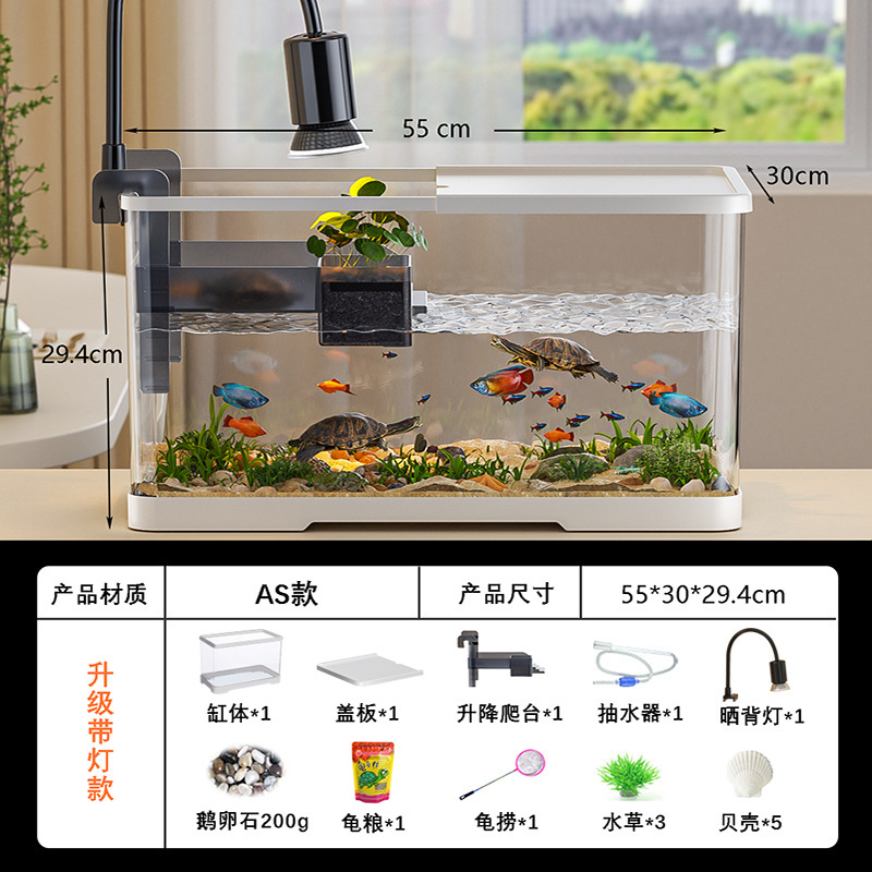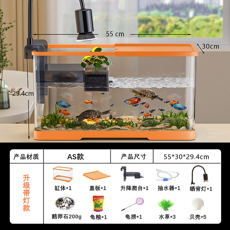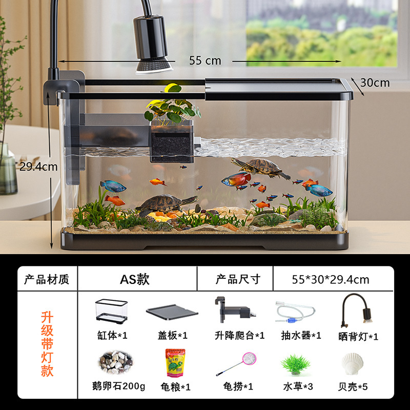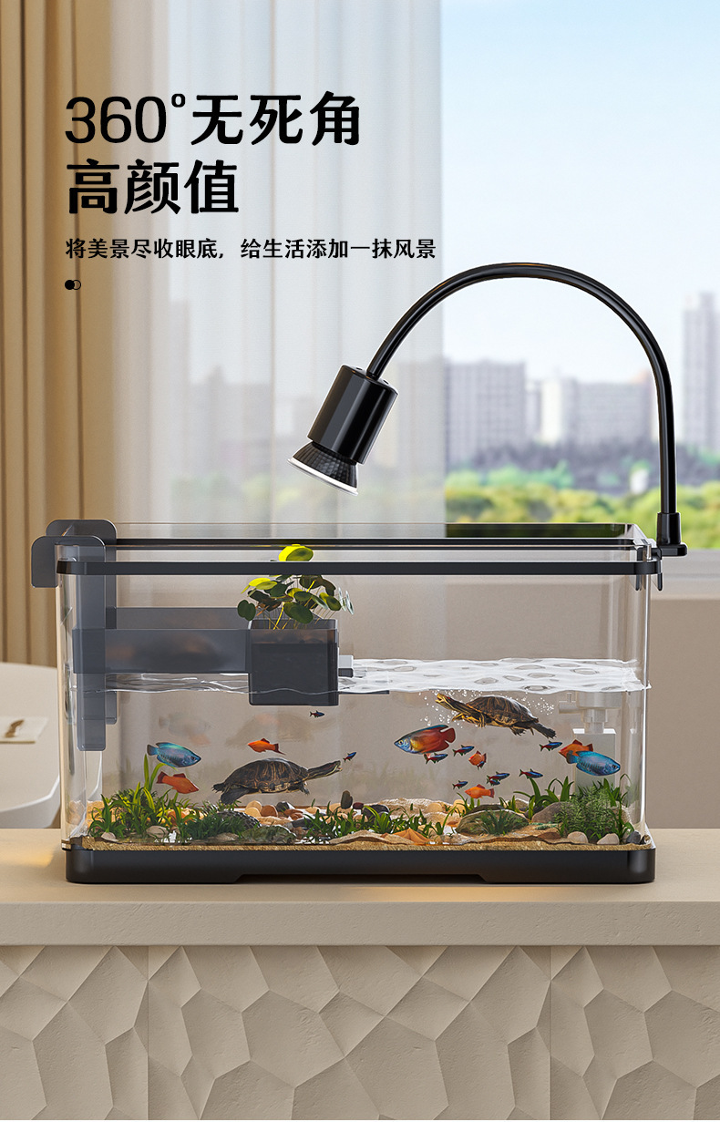 넓은 법원 물고기 거북 혼합 탱크 데스크탑 물고기 탱크 거실 전용 탱크 태양 테이블 수족관 게으른 사람 순환 통합 플라스틱