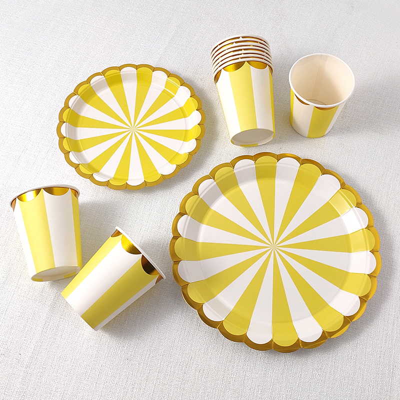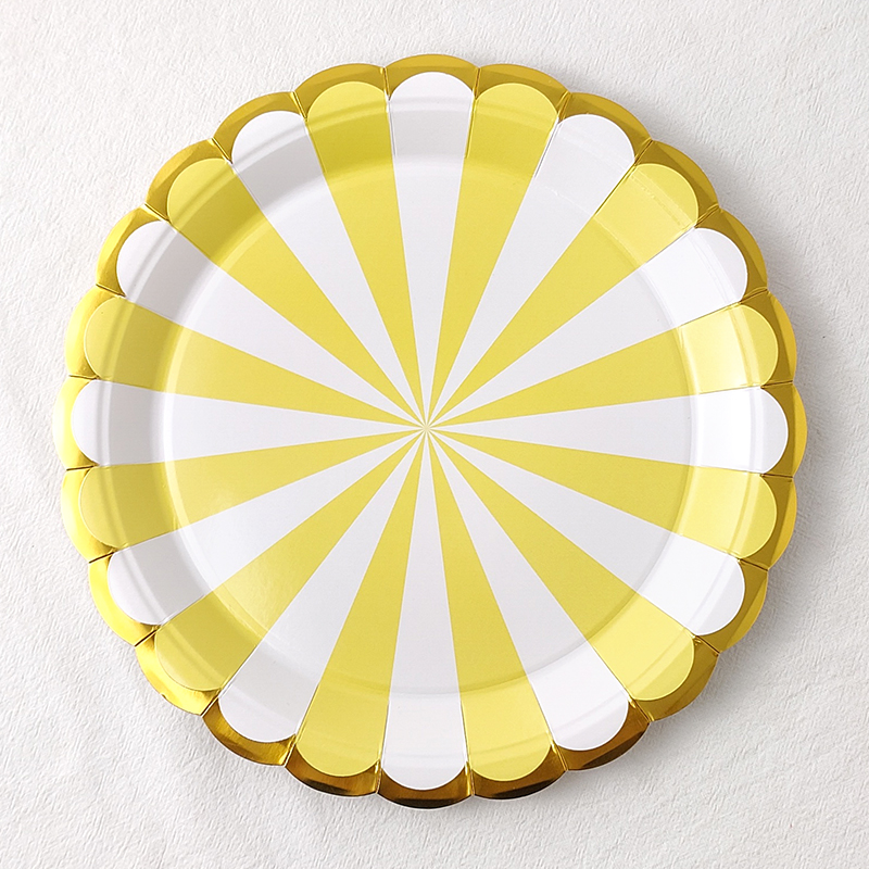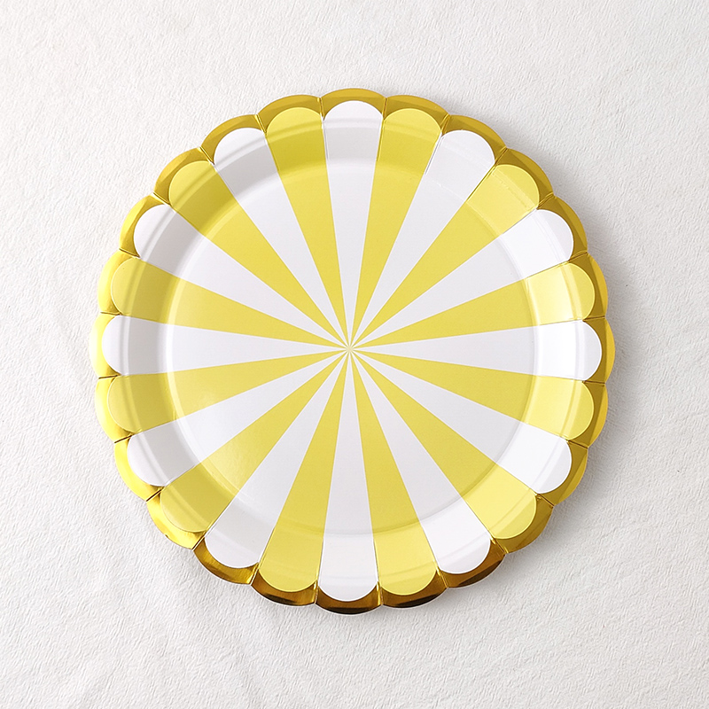 • 7inch 핫 스탬핑 줄무늬 노란색 종이 접시 - 10개
